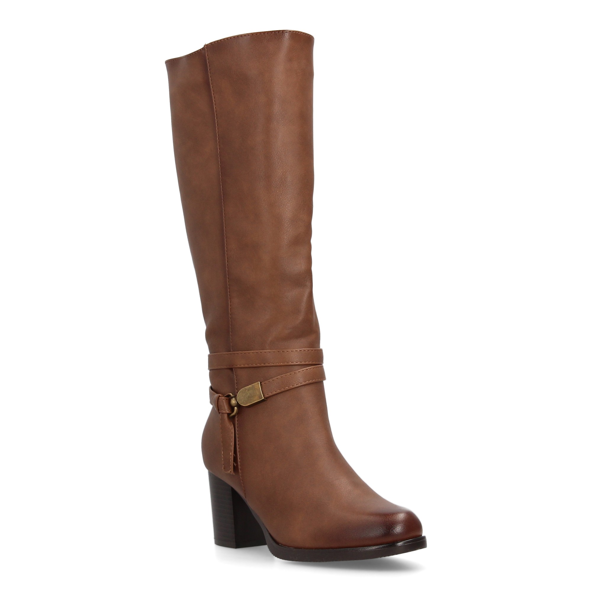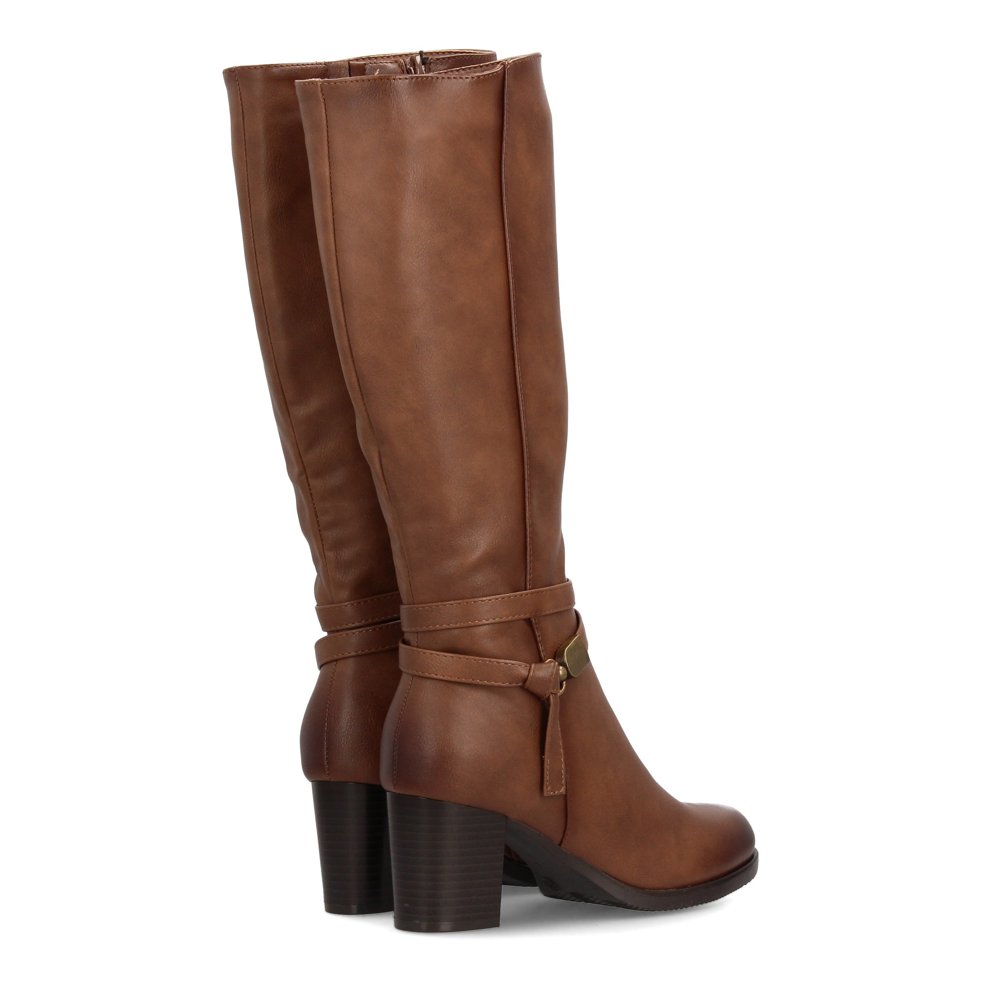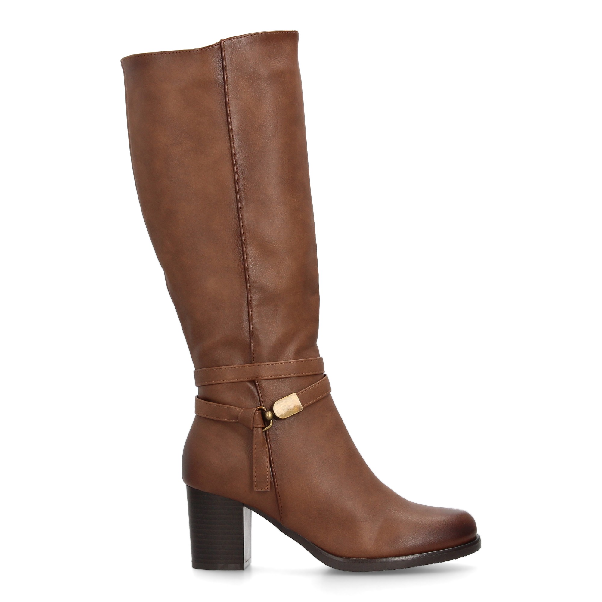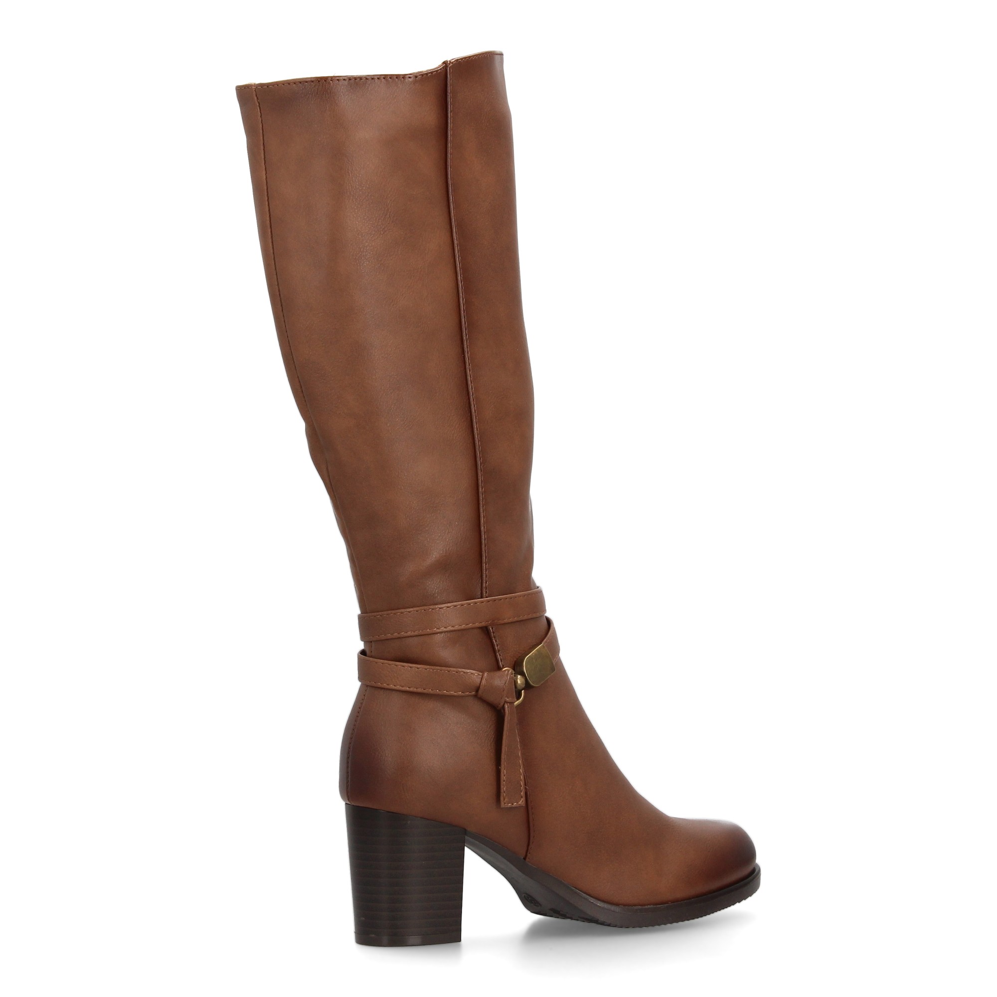 Bota alta de mujer con estampado liso. Cierre de cremallera cierre lateral de cremallera y detalle de tira con adorno metálico en el tobillo que realza el diseño. Ideal temporada otoño invierno. Tacon medio.