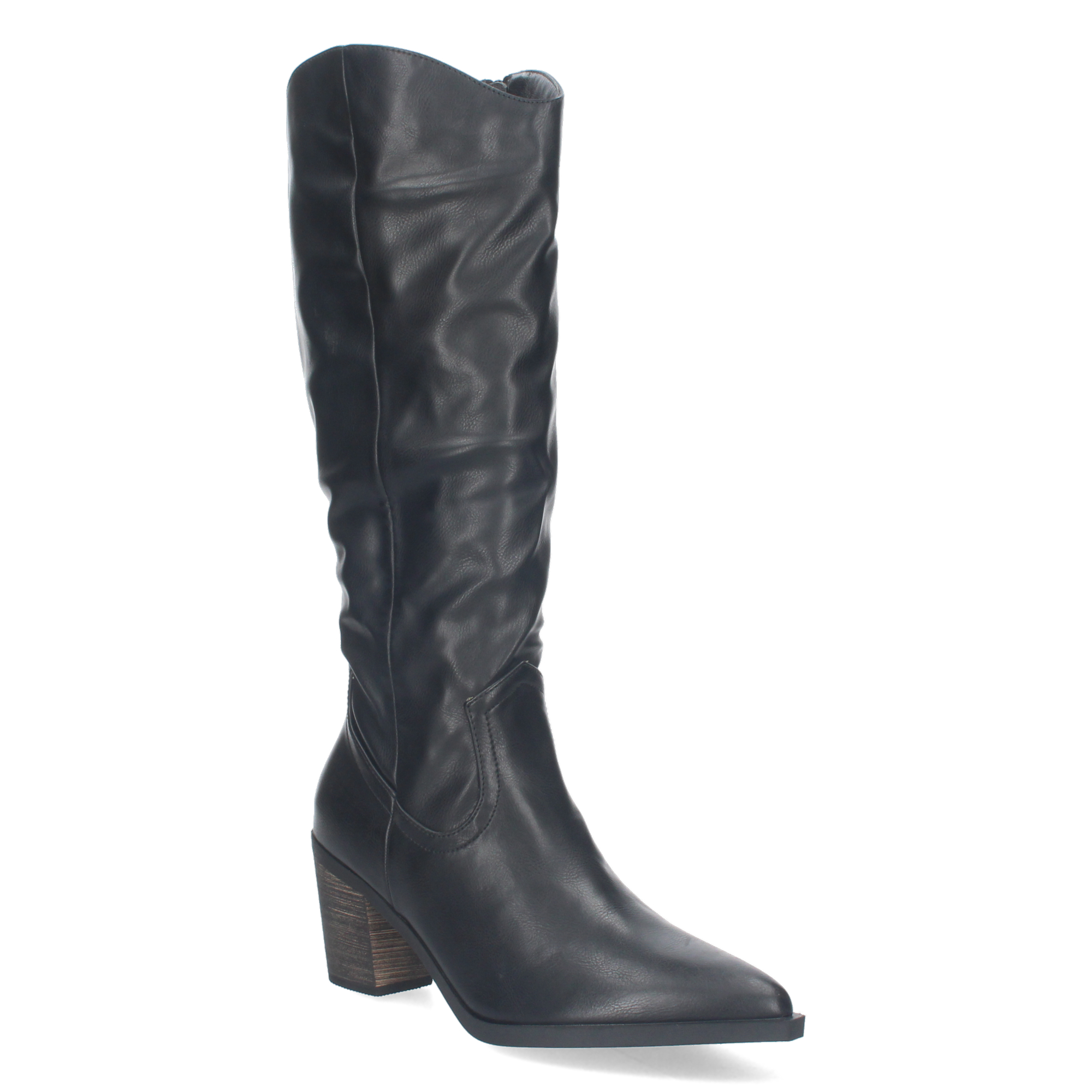 Bota campera lisa con caña arrugada polipiel punta fina con cierre de cremallera