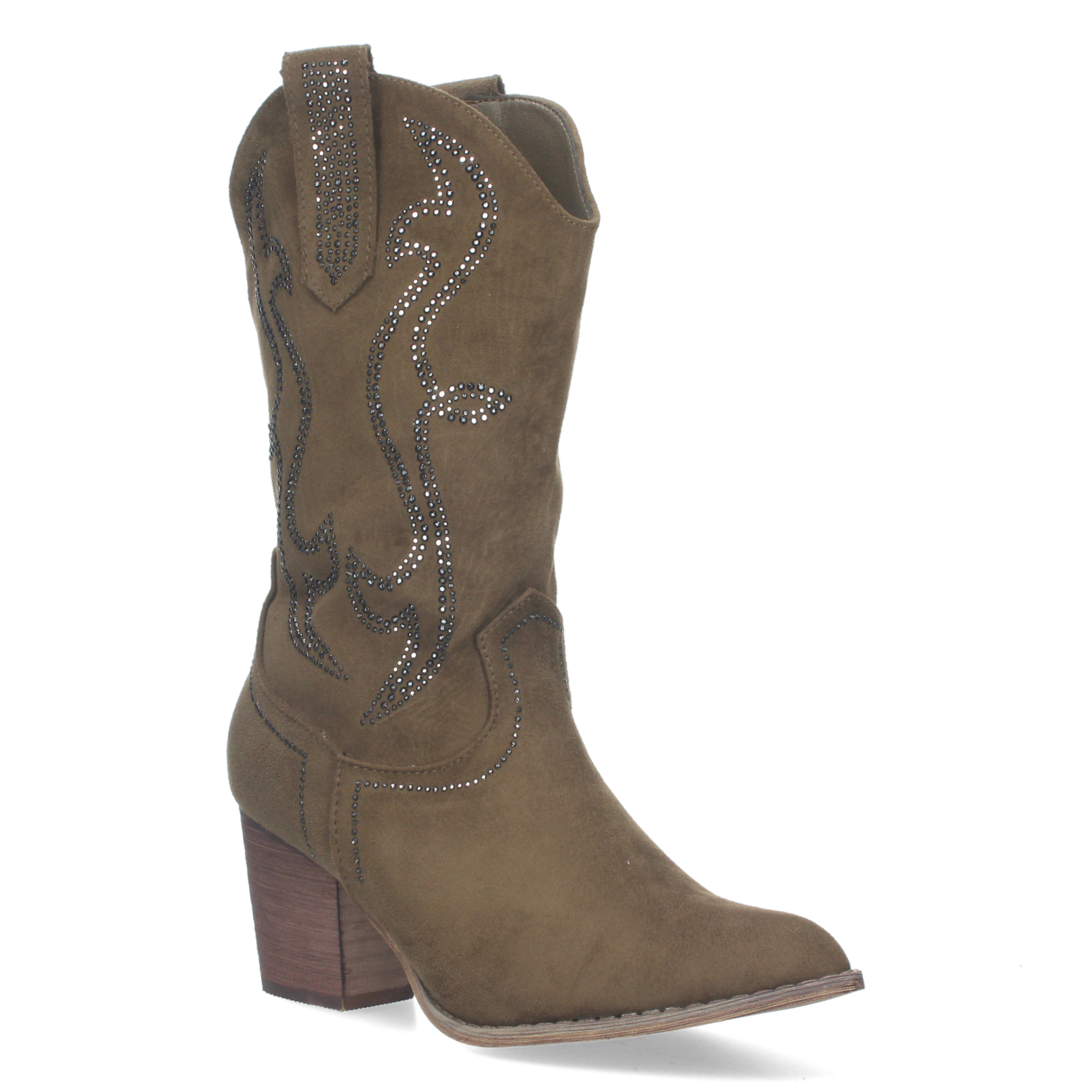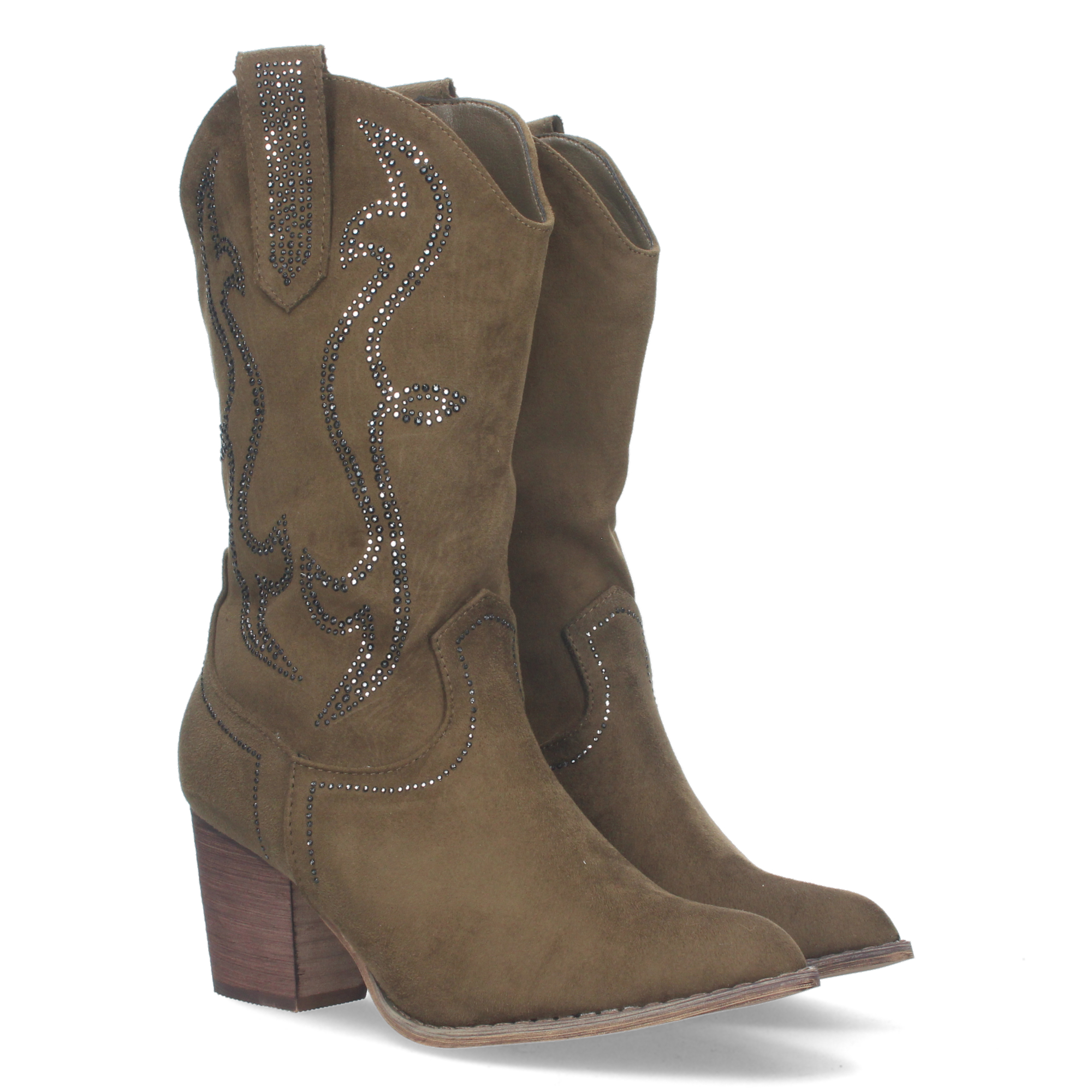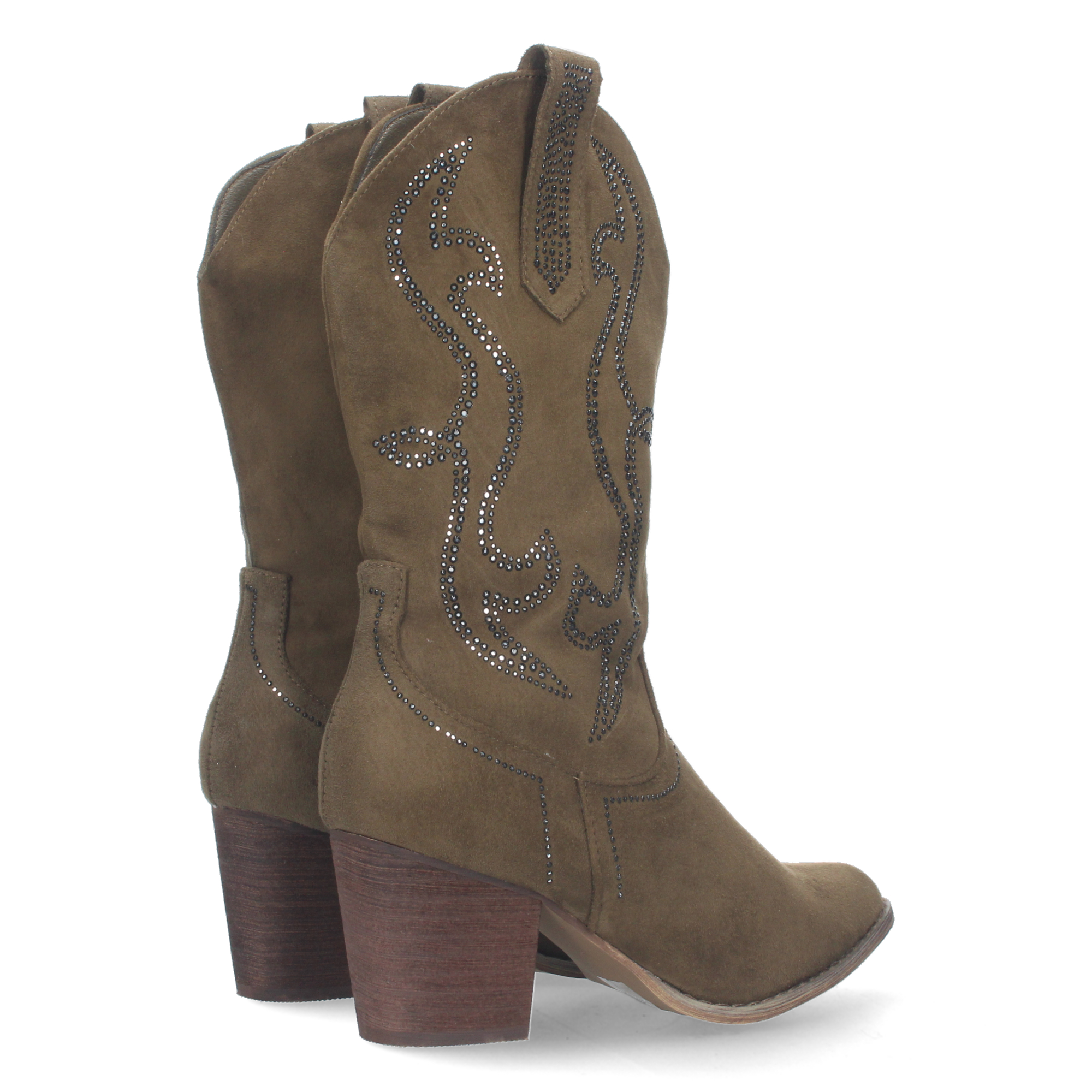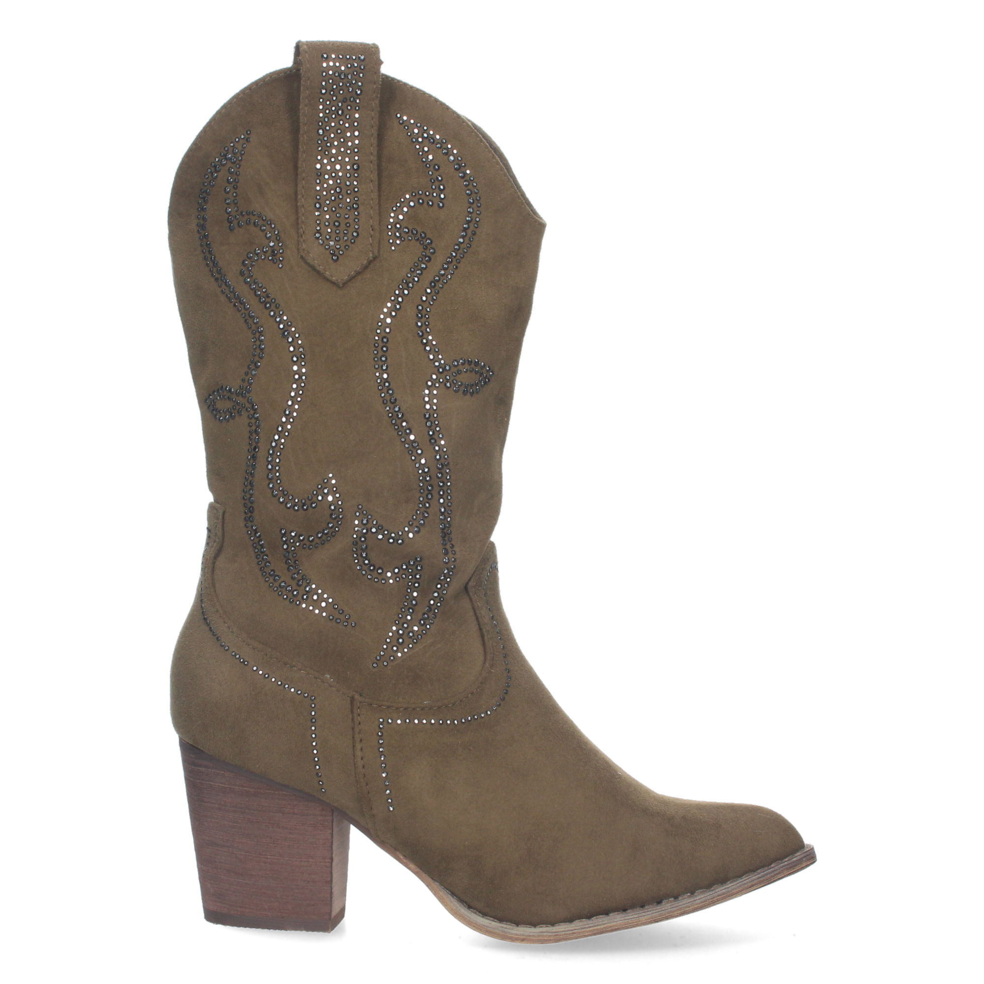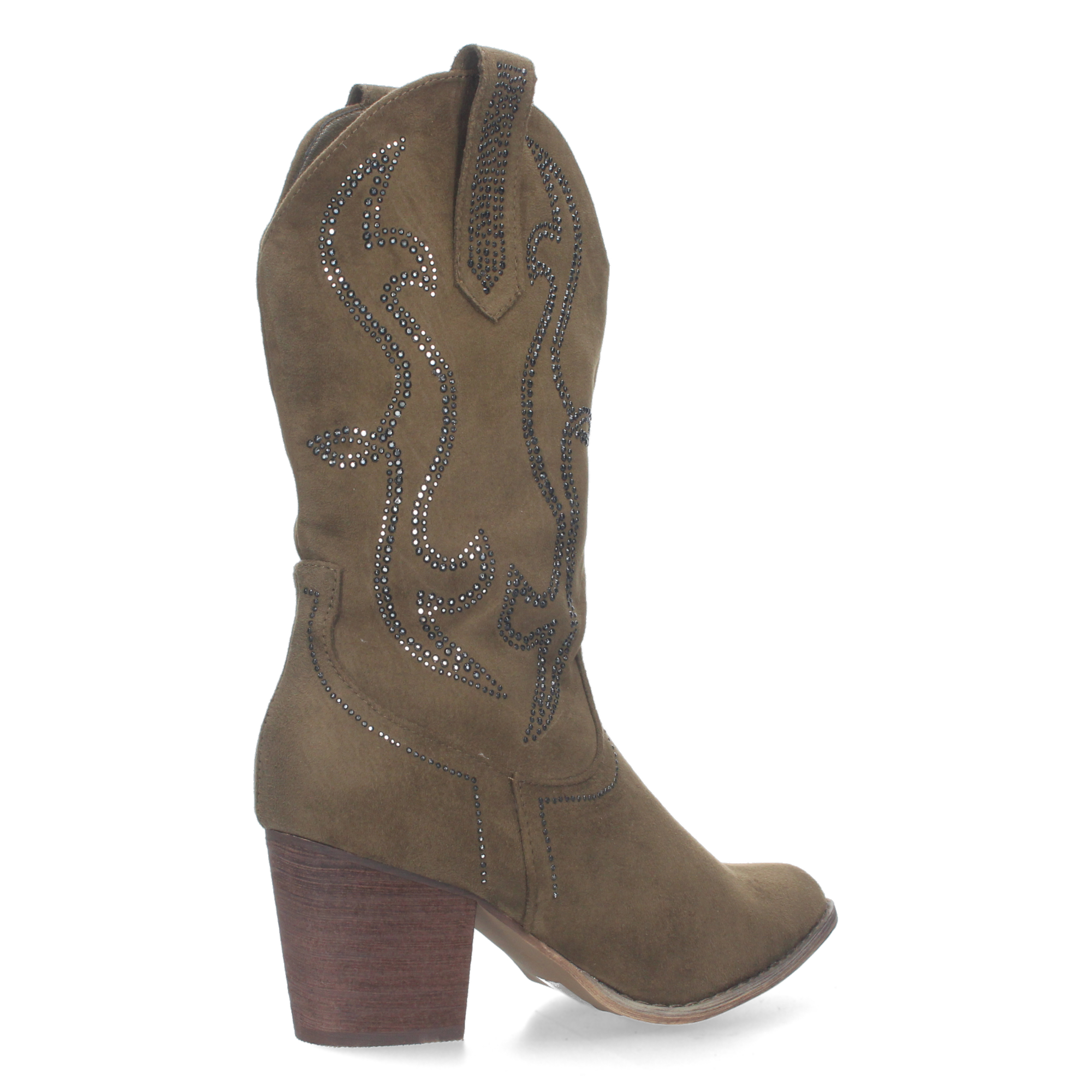 Bota campera con diseño de piedras brillantes en la caña estilo vaquero modernizado y cierre de cremallera. La caña mide 25cm.