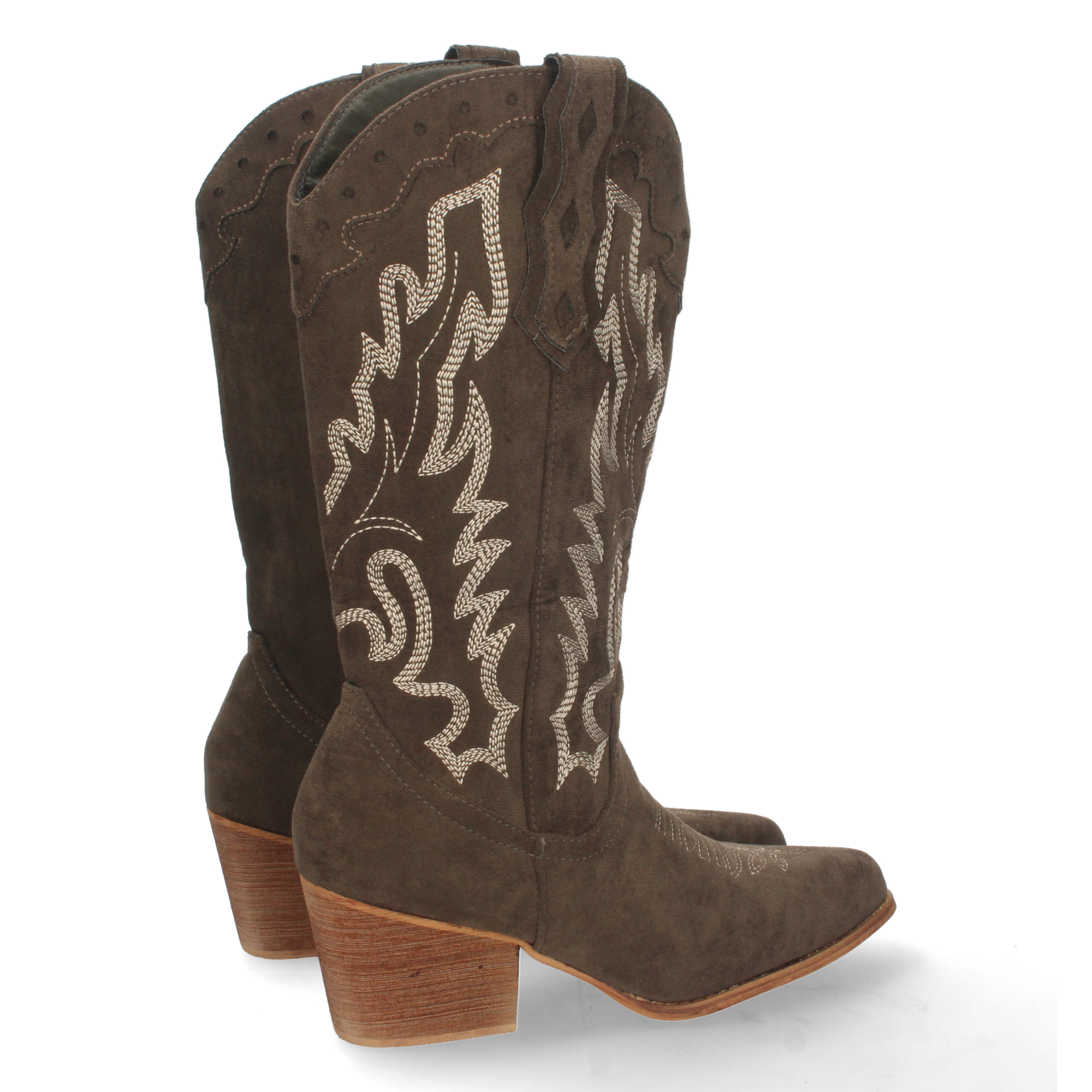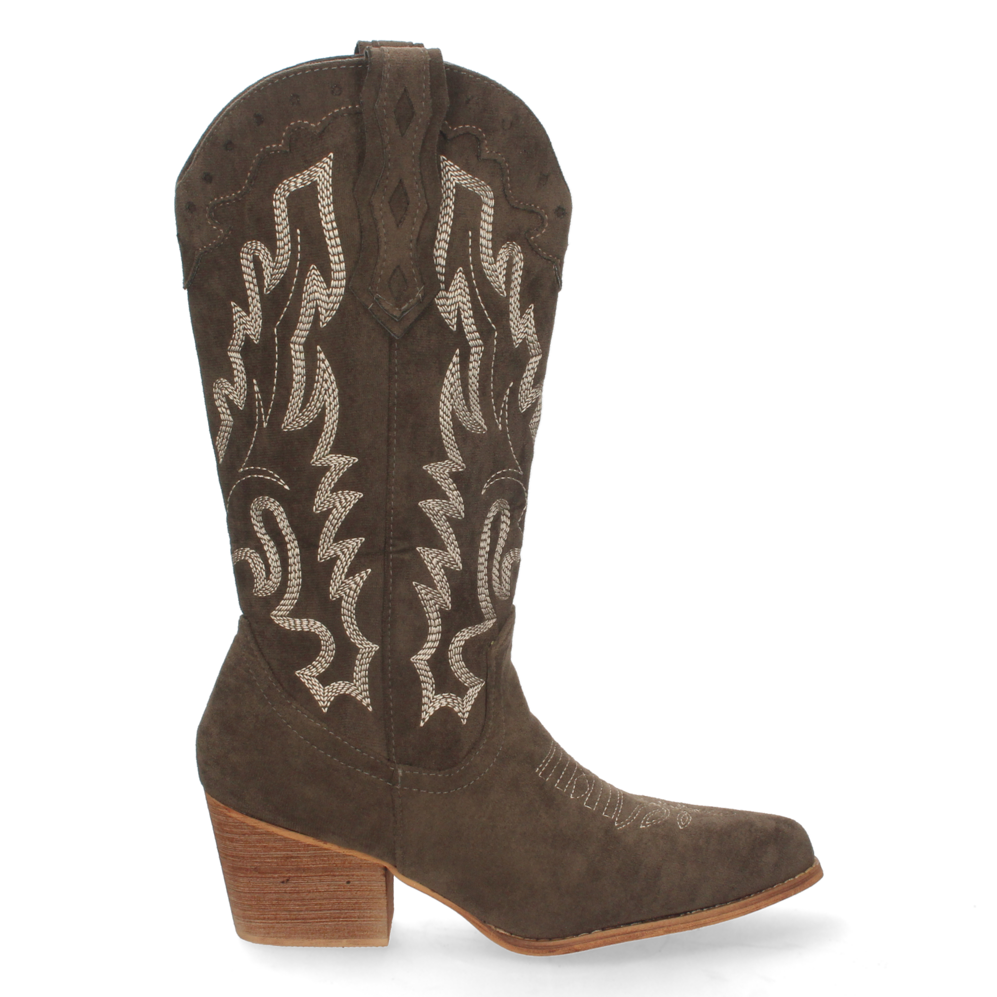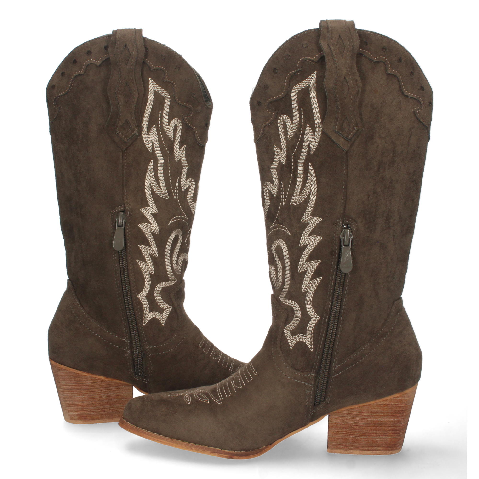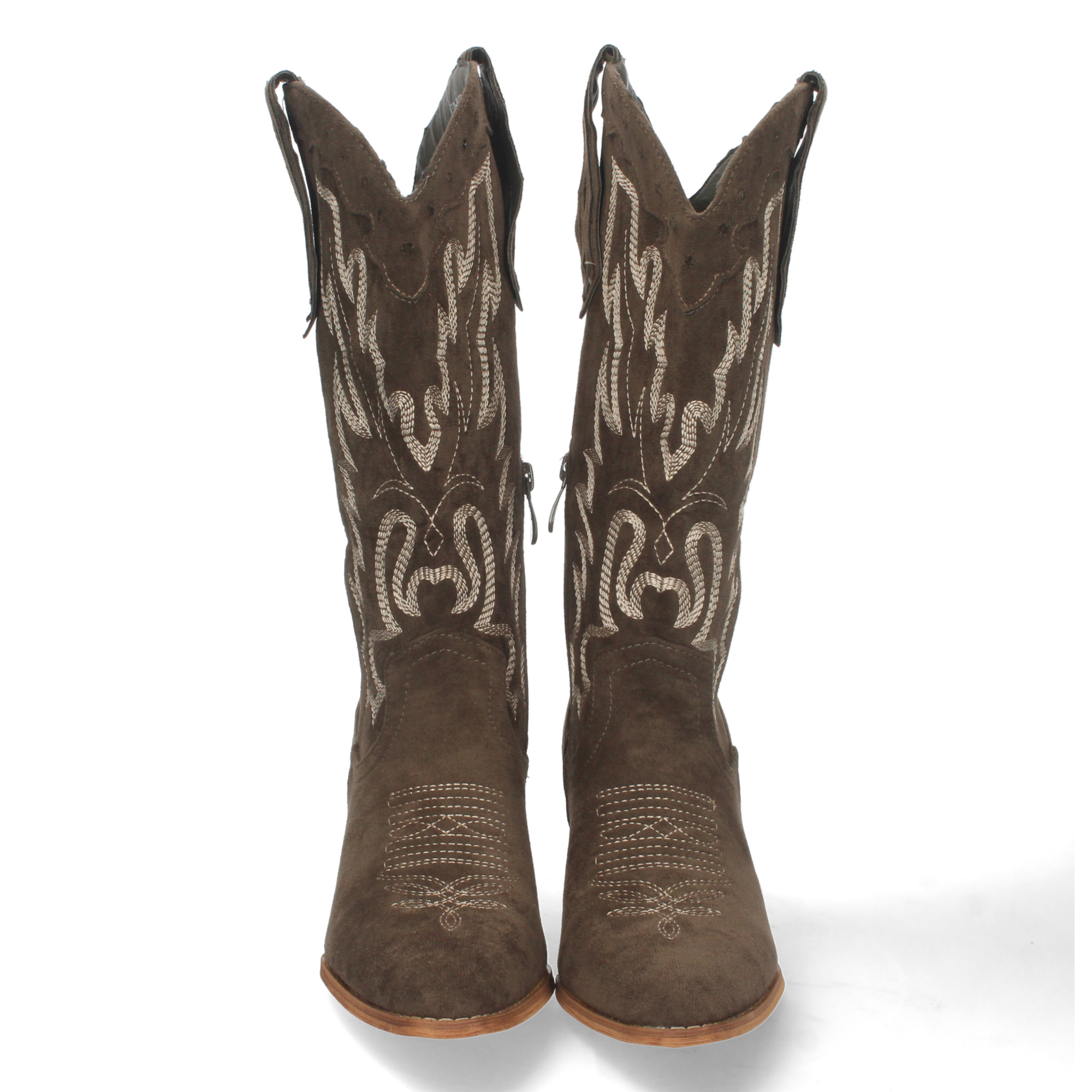 Bota Campera con Tacon para Mujer Comoda con Bordado en Caña y Cierre de Cremallera Otoño Invierno 2022