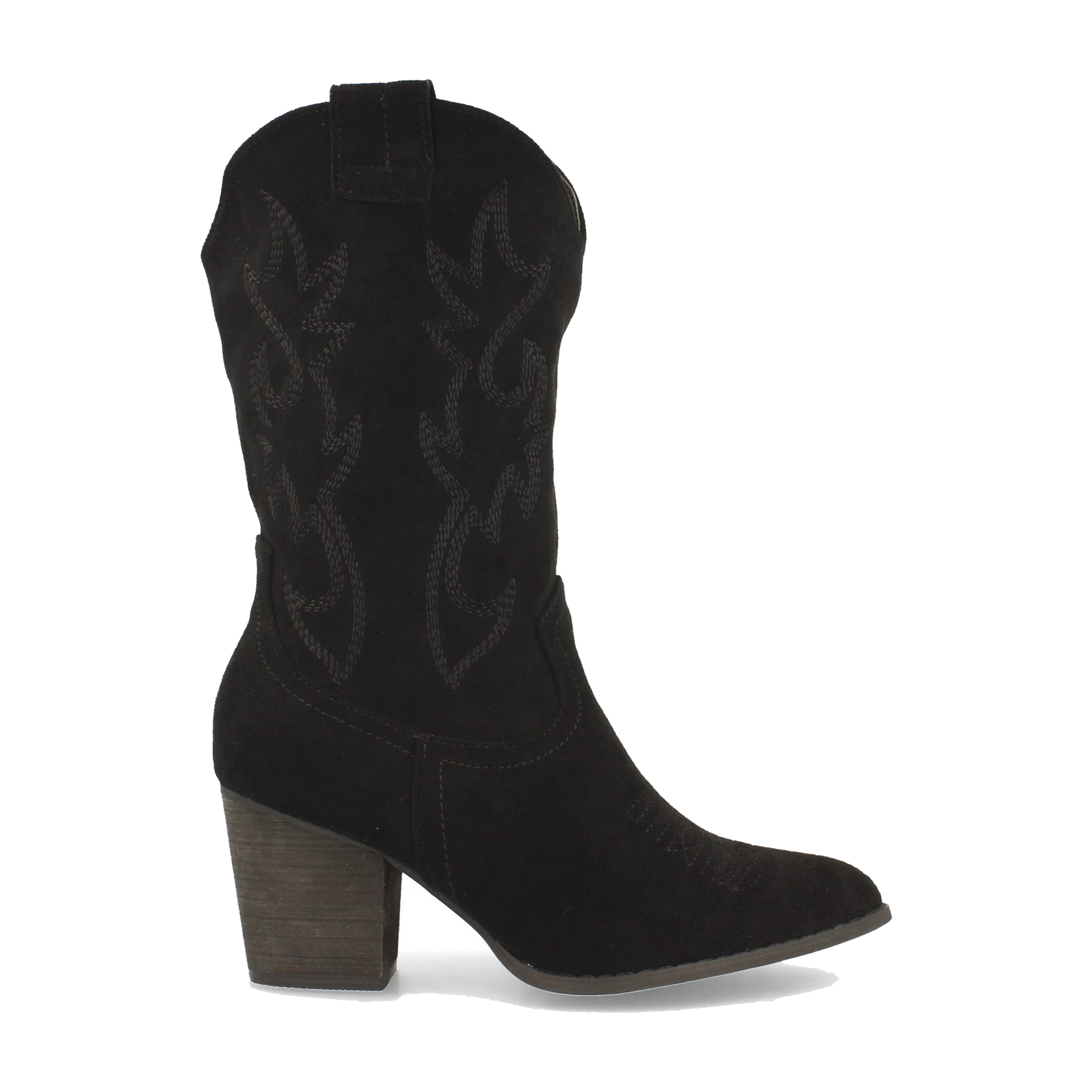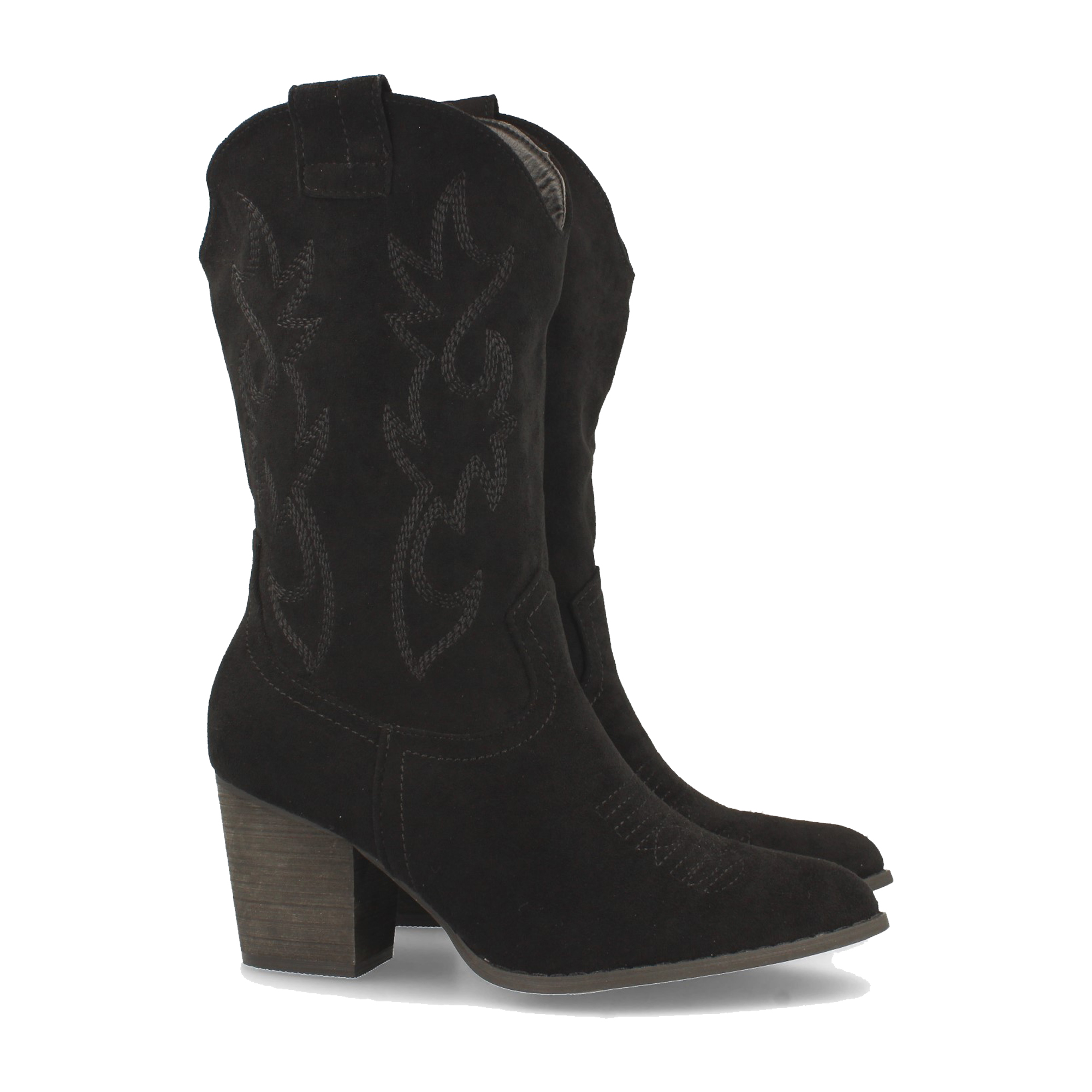 Botín Campero con Tacón Cómodo con Bordado en Caña y Empeine y Cierre de Cremallera.