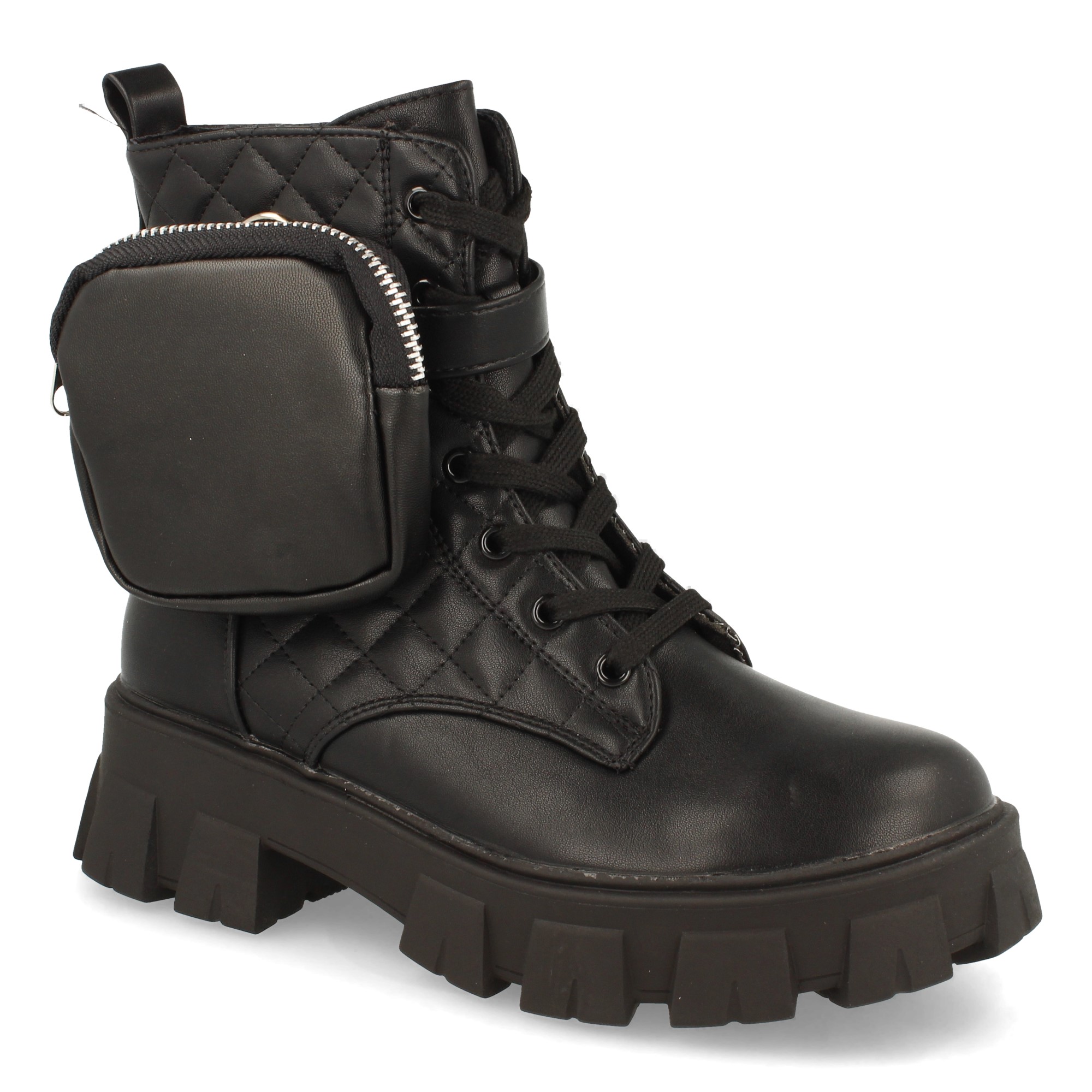 Botin de Plataforma para Mujer con Suela Dentada Bolsillo con Cremallera Acolchado y Cierre de Cordones Otoño Invierno 2021