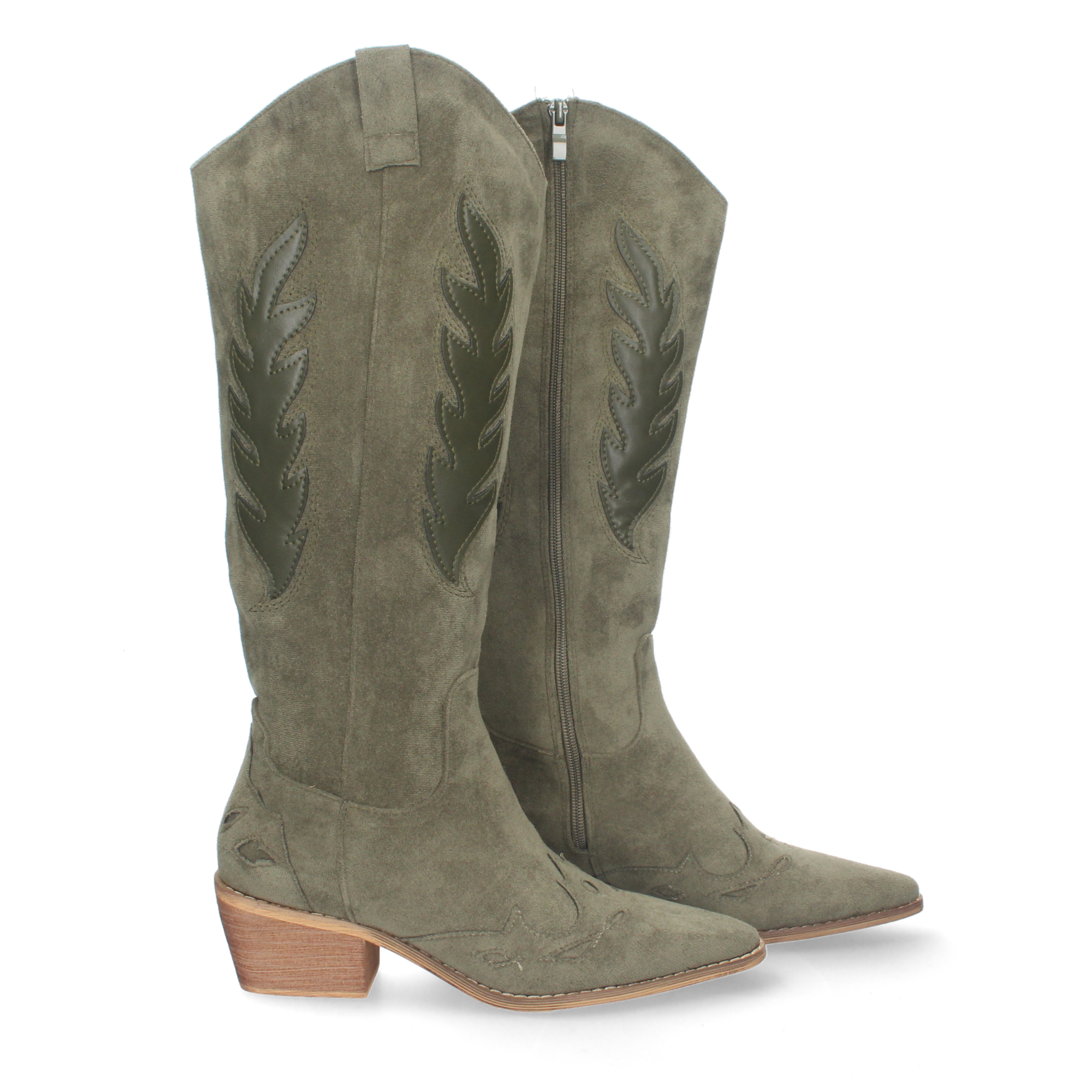 Bota de tacon para mujer comodas de material aterciopelado con estampado en la caña y en la pala y cierre de cremallera.
