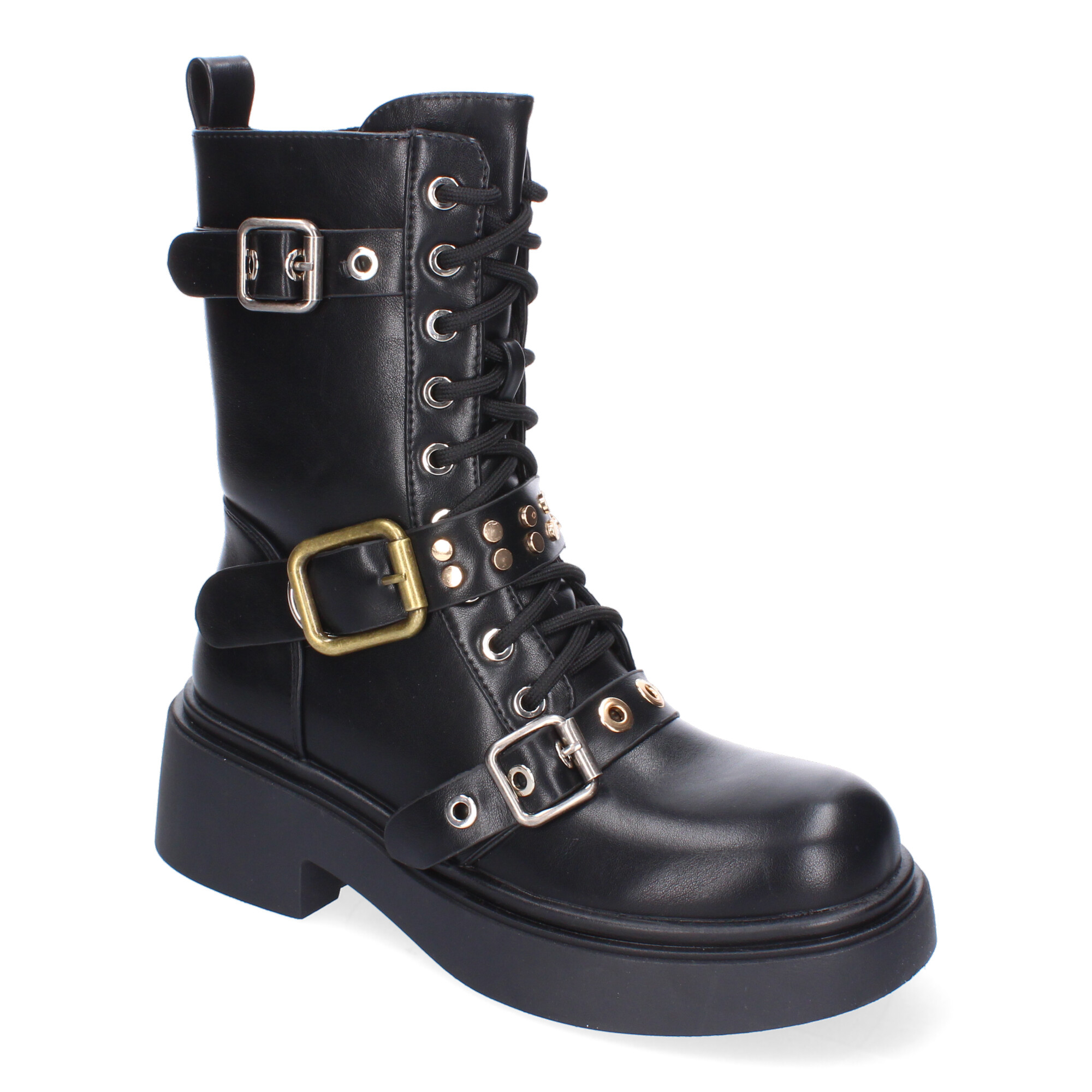 Bota de Tacón para Mujer Comodas y Elegantes Adornos de Hebillas Cierre de Cremallera y Punta Redonda.
