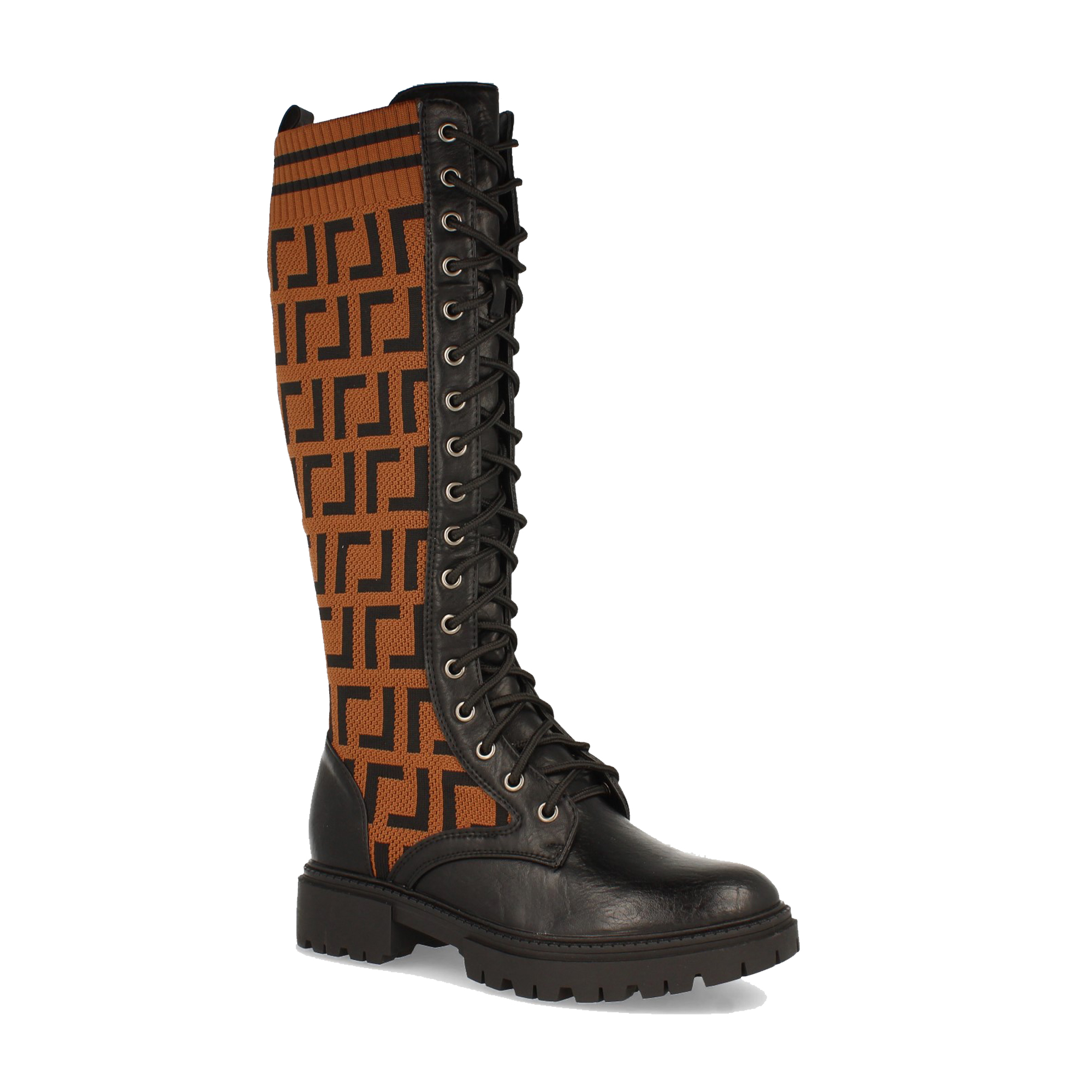 Bota Plana para Mujer con Grabados Etnicos en el Elastico y Cierre de Cordones Otoño Invierno 2021