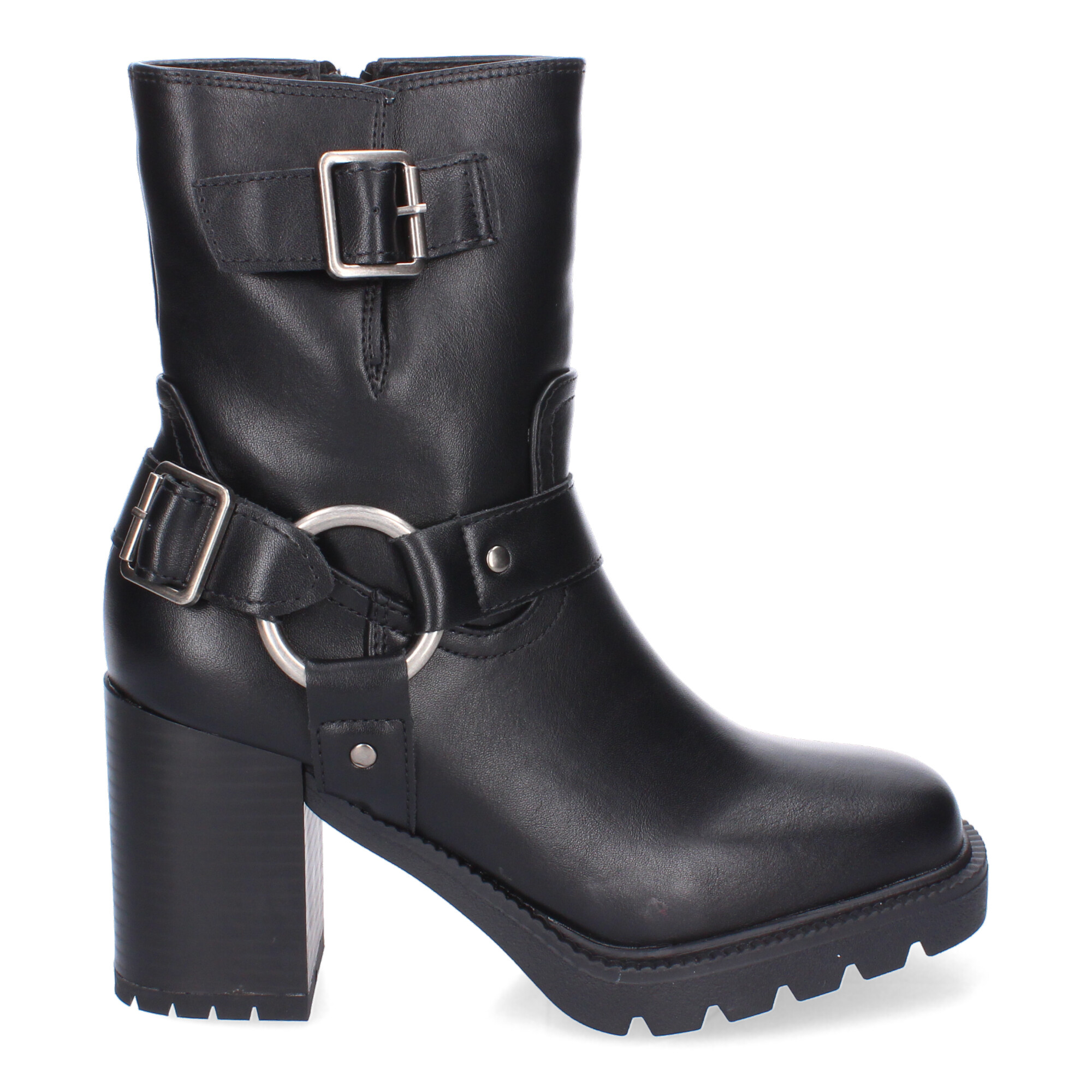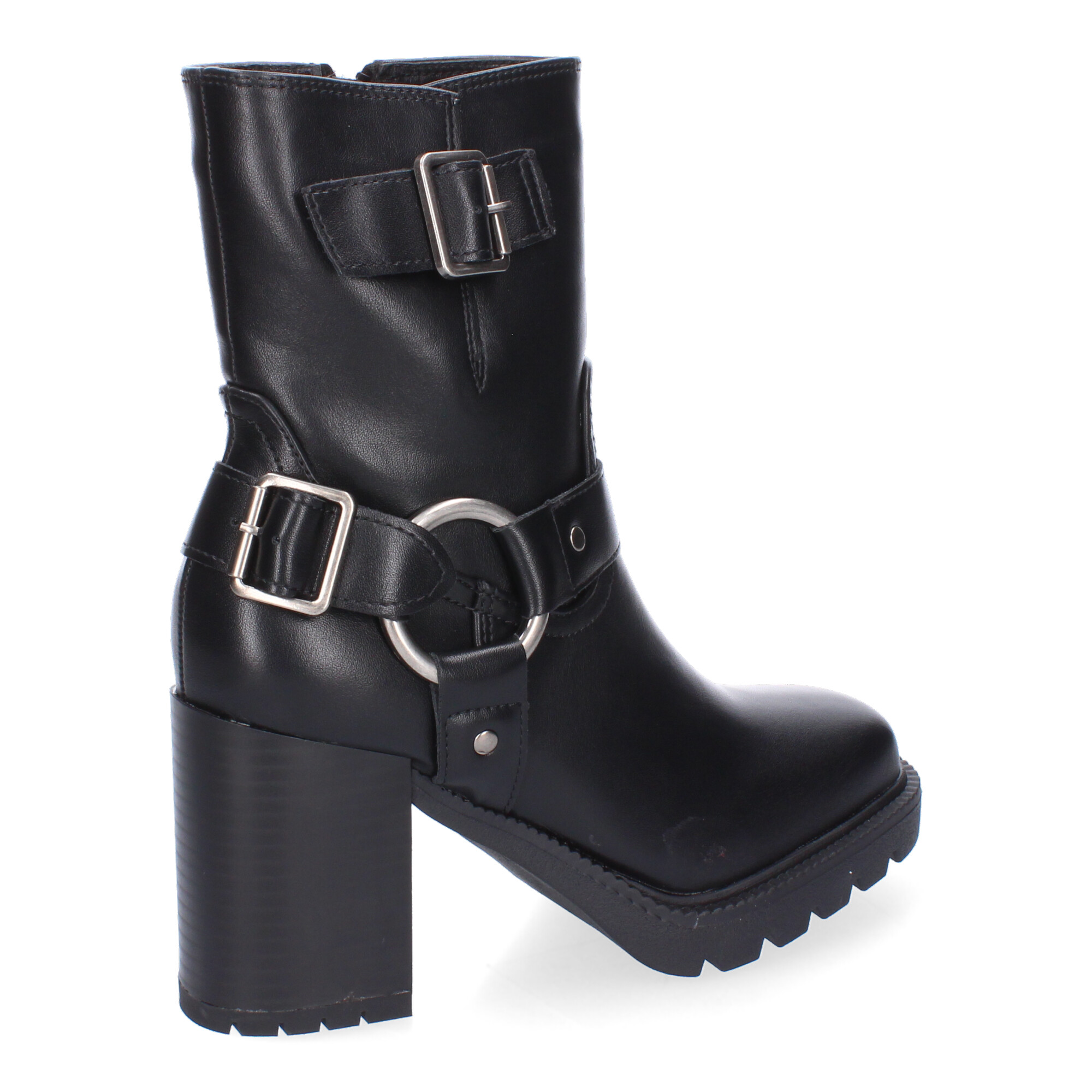 Botas de Tacón para Mujer Comodas y Elegantes Suela Dentada Punta Redonda Adornos de Hebillas y Cierre de Cremallera.