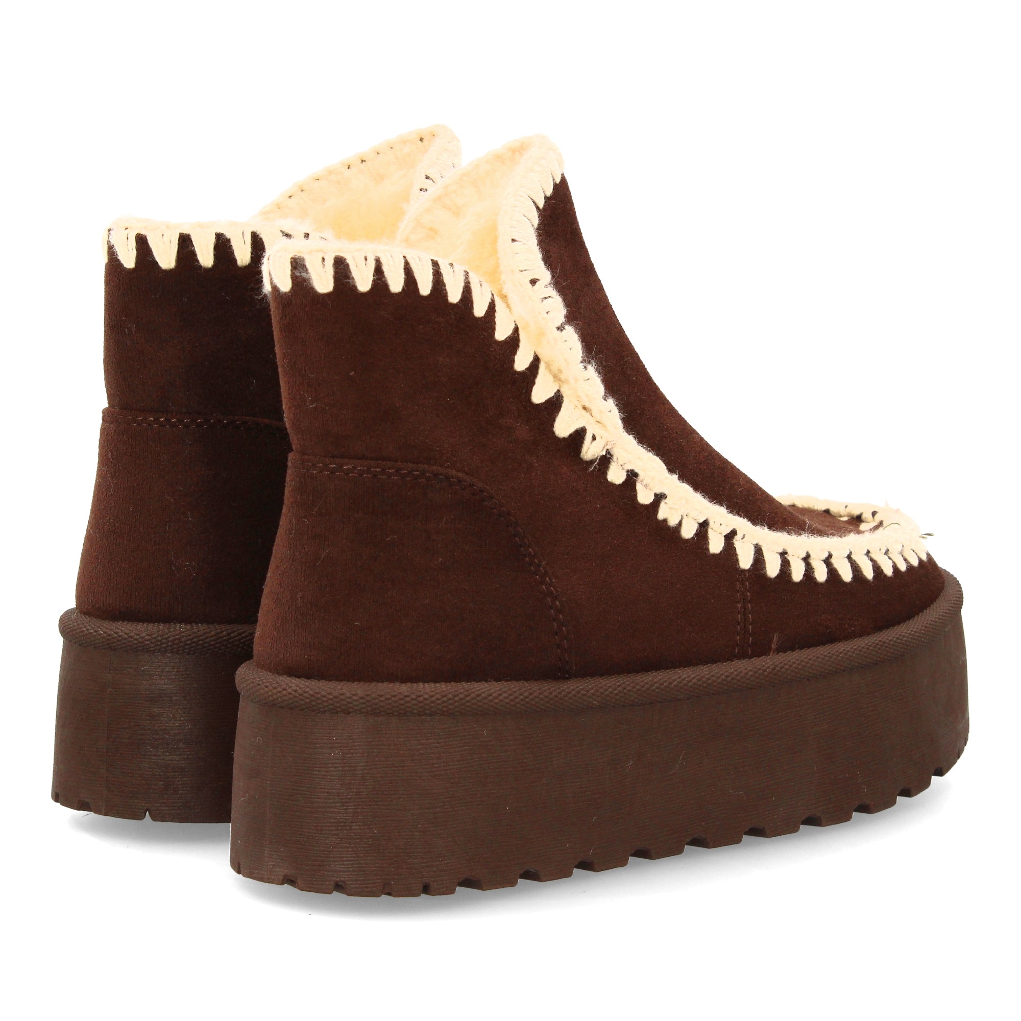 Botín de mujer tipo australiano con plataforma ideal para los días fríos de la temporada Otoño Invierno. Forrado interiormente con suave borreguillo costuras gruesas decorativas diseño artesanal.