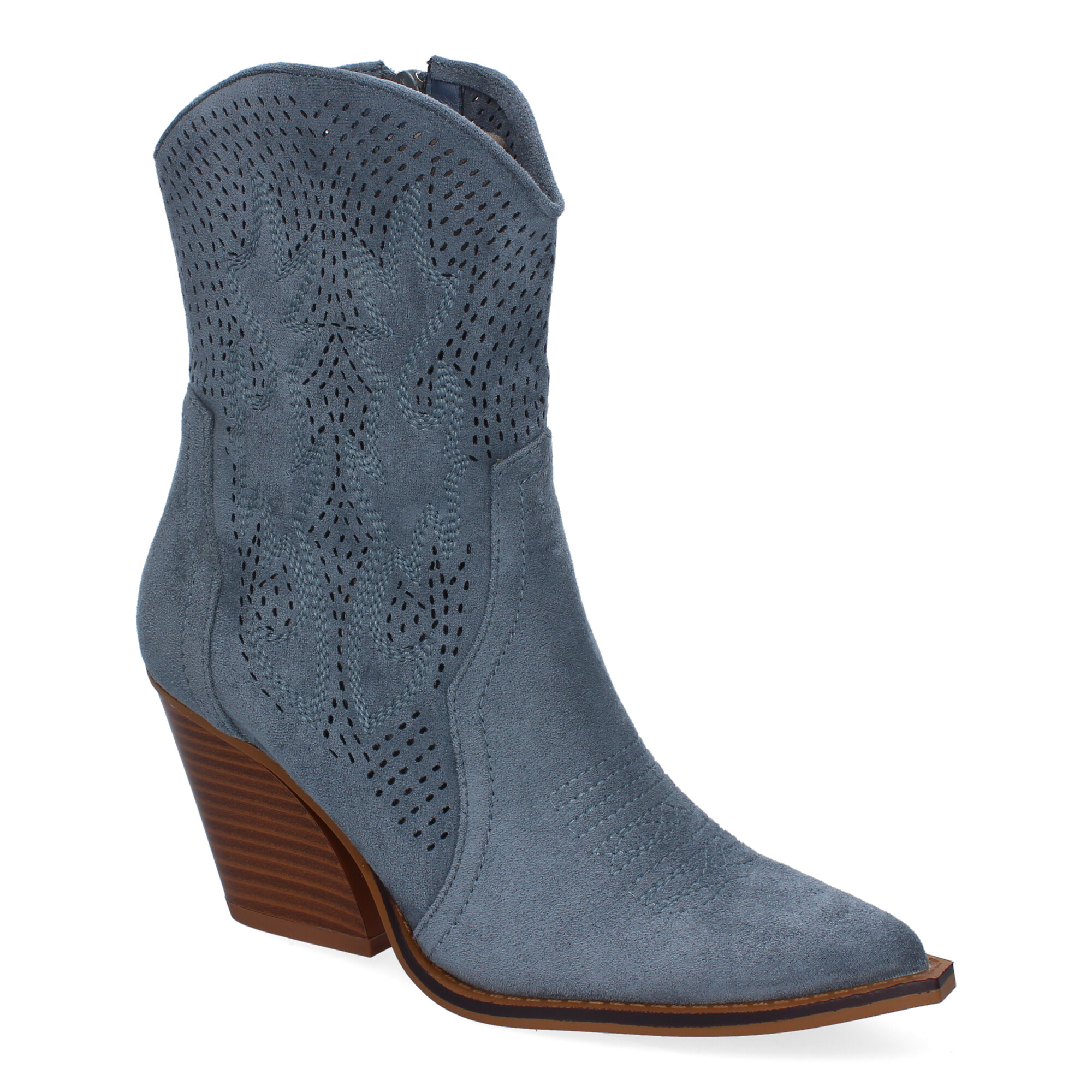 Botín Campero con Tacón Cómodos Diseño Calado con Bordado en Caña y Empeine y Cierre de Cremallera.