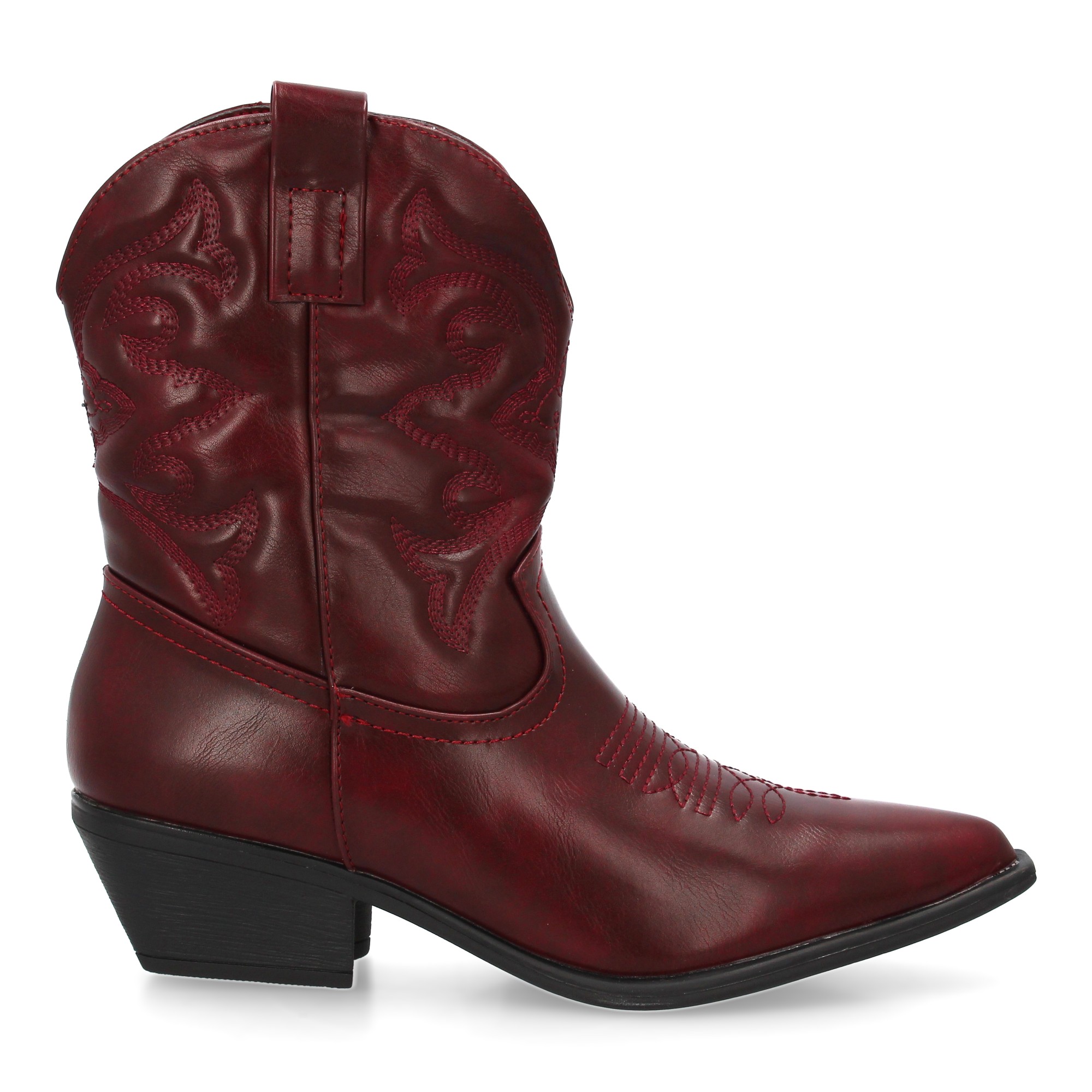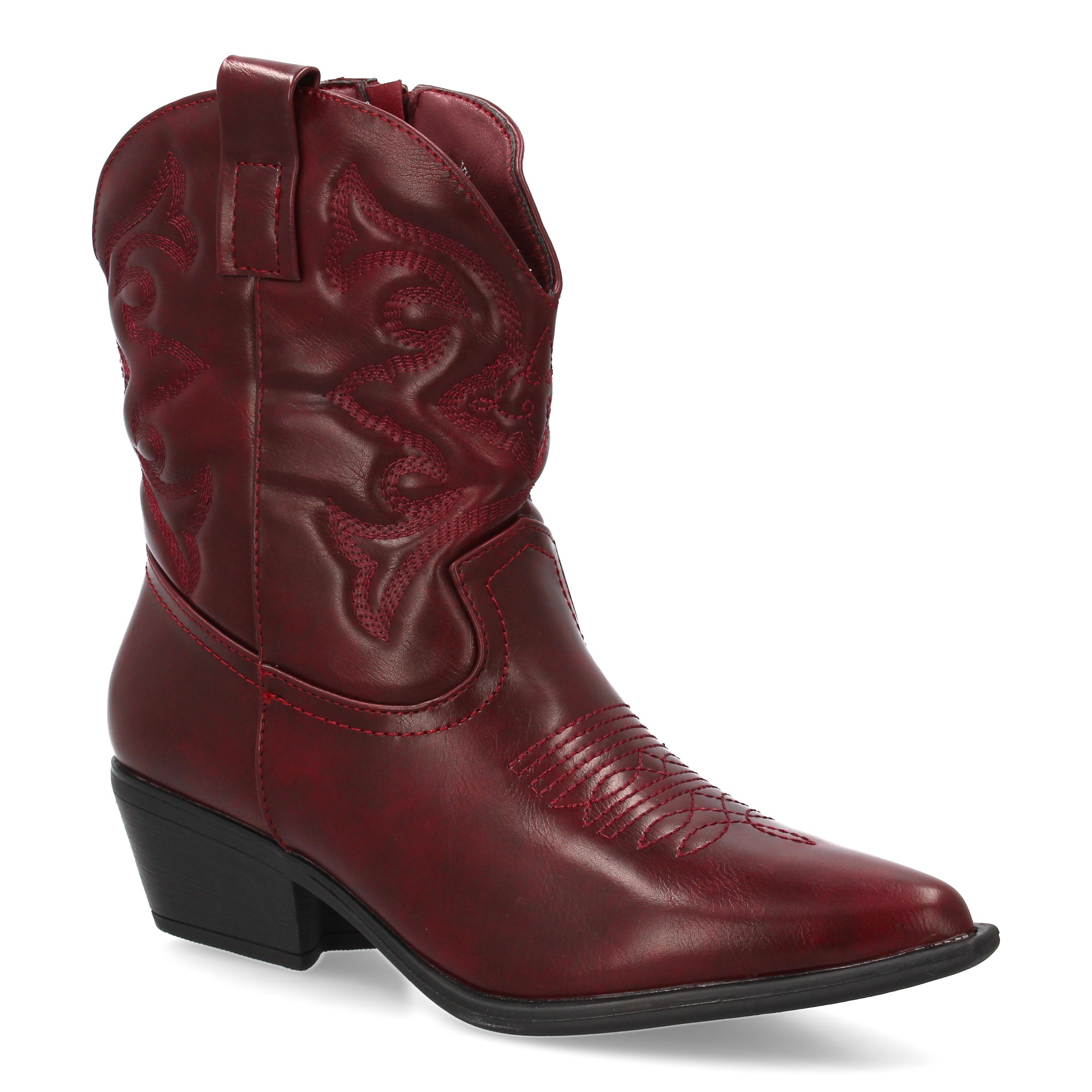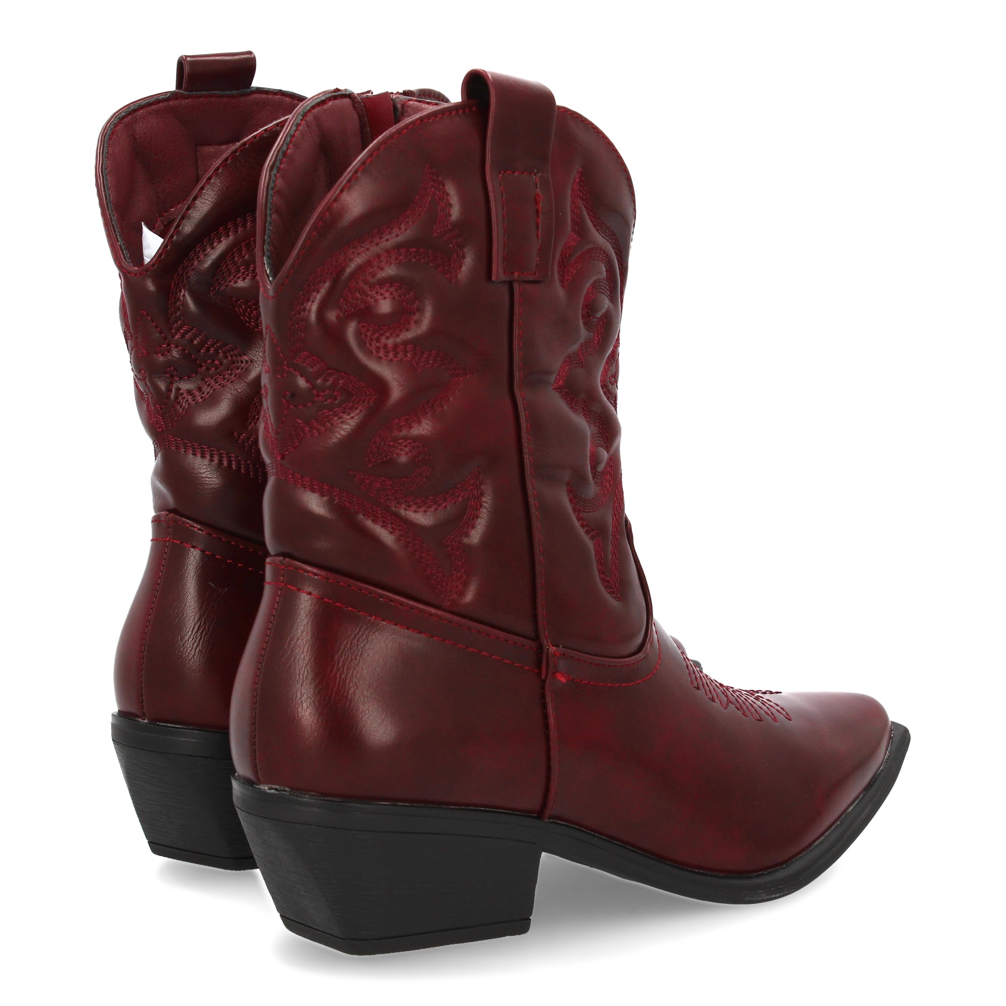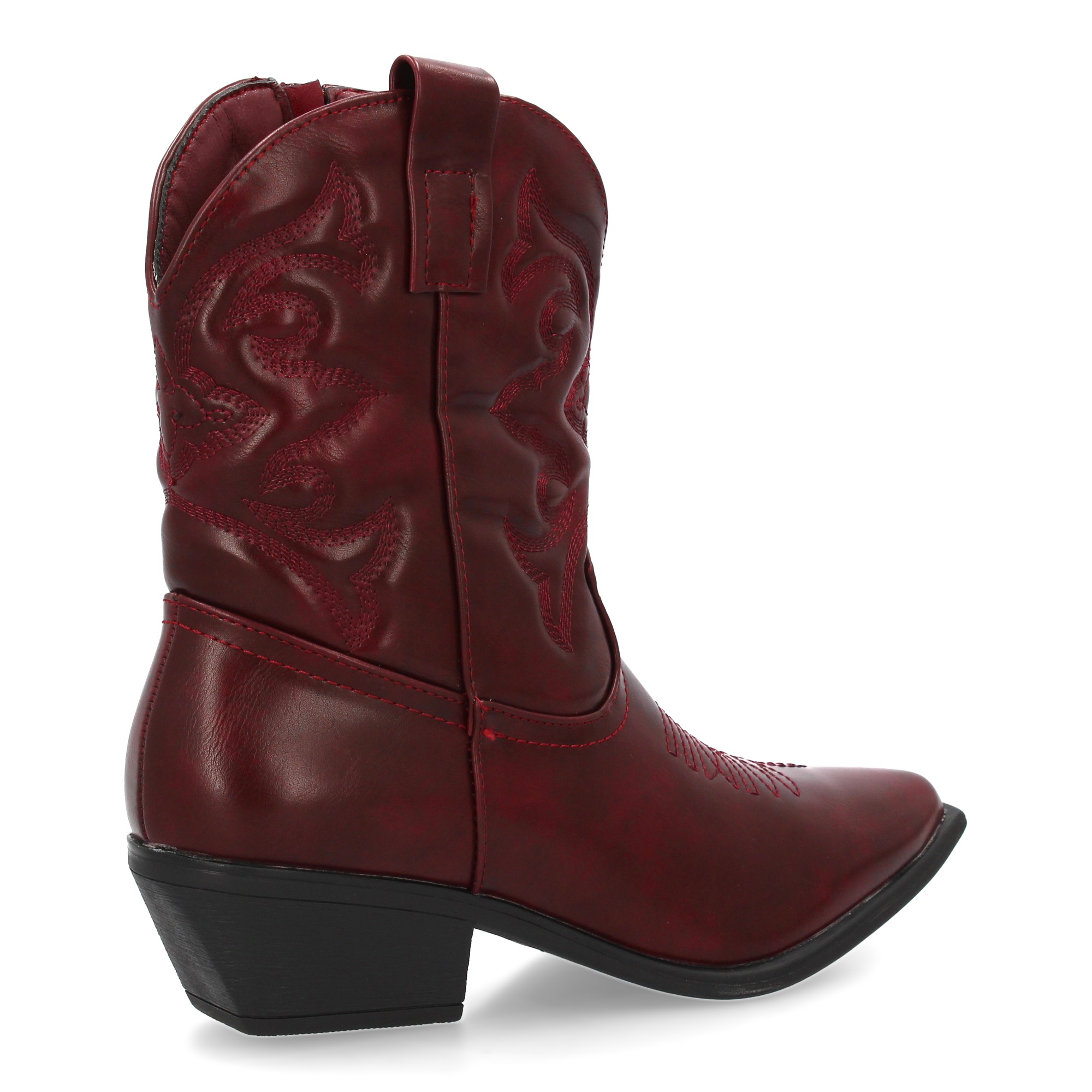 Botín estilo cowboy con bordados en la caña tacón ancho y punta fina. Estampado liso Diseño moderno con cierre de cremallera ideal para mujer en la temporada Otoño invierno.