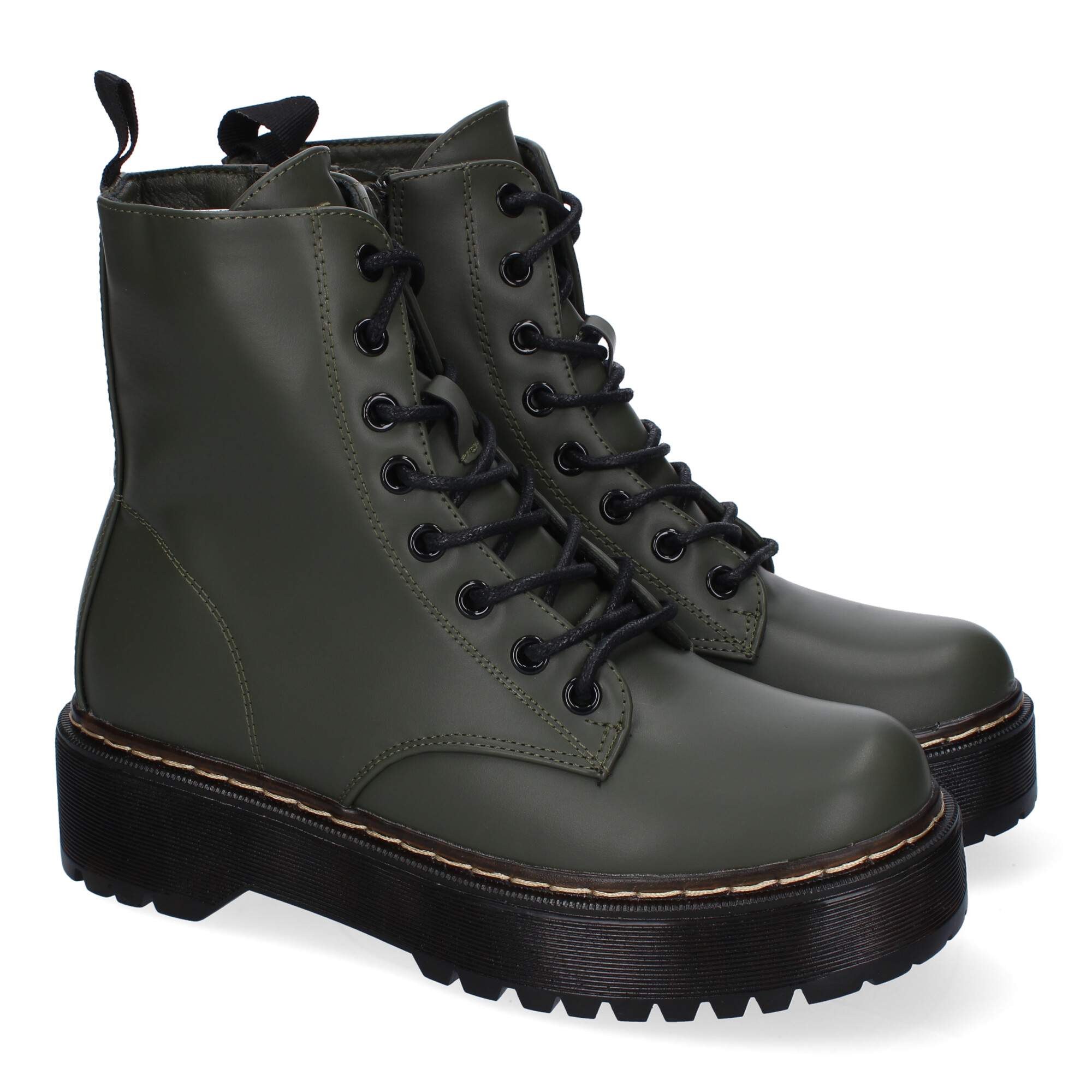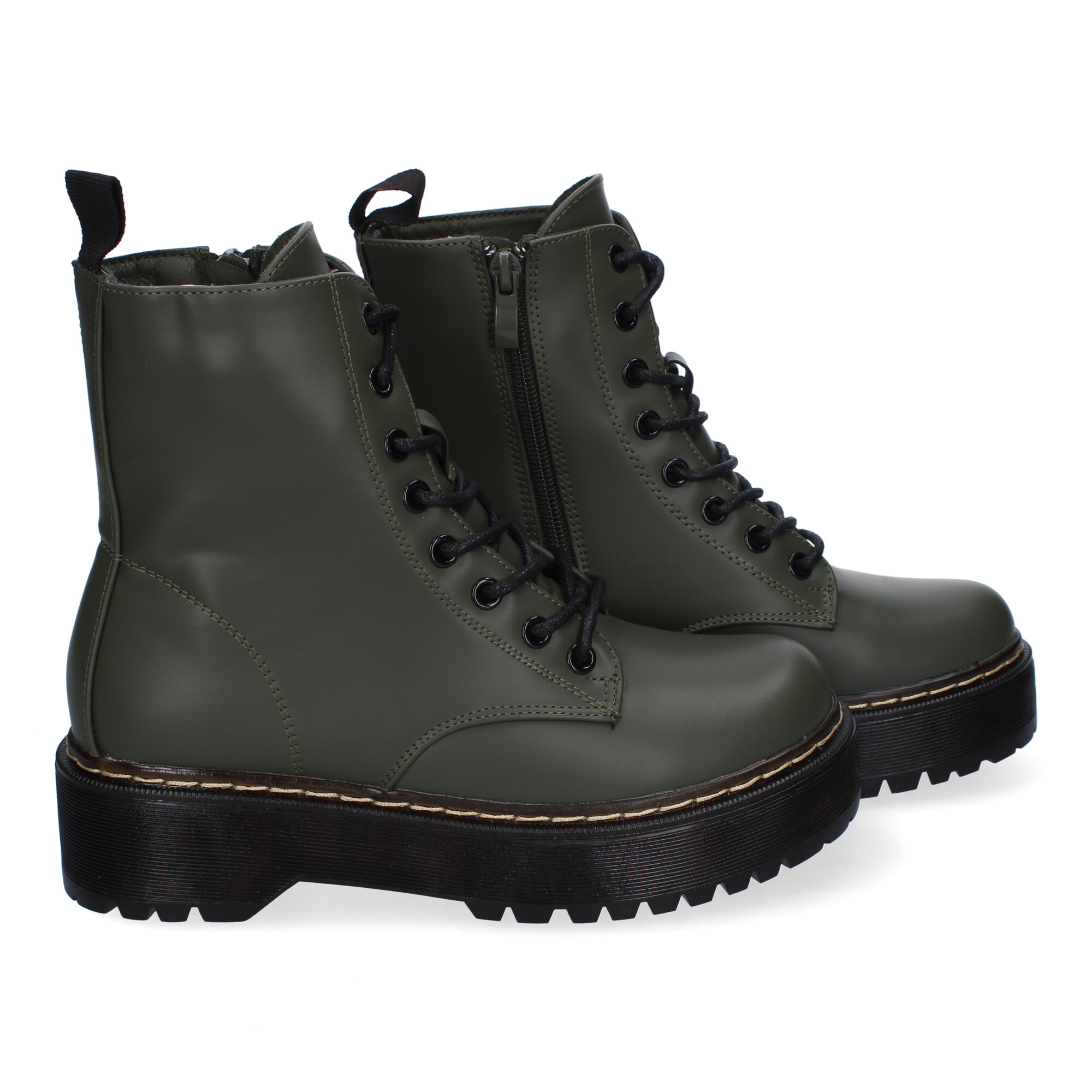 Botín de Mujer de Doble Suela Comodos con Plataforma y Cierre de Cremallera y Cordoneras.