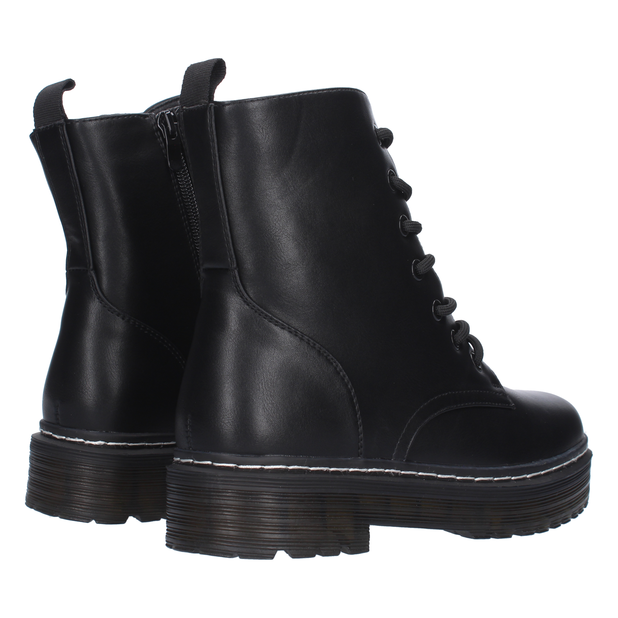 Botin de Tacon Ancho para Mujer Comodo con Estampado Liso y Cierre de Cremallera.