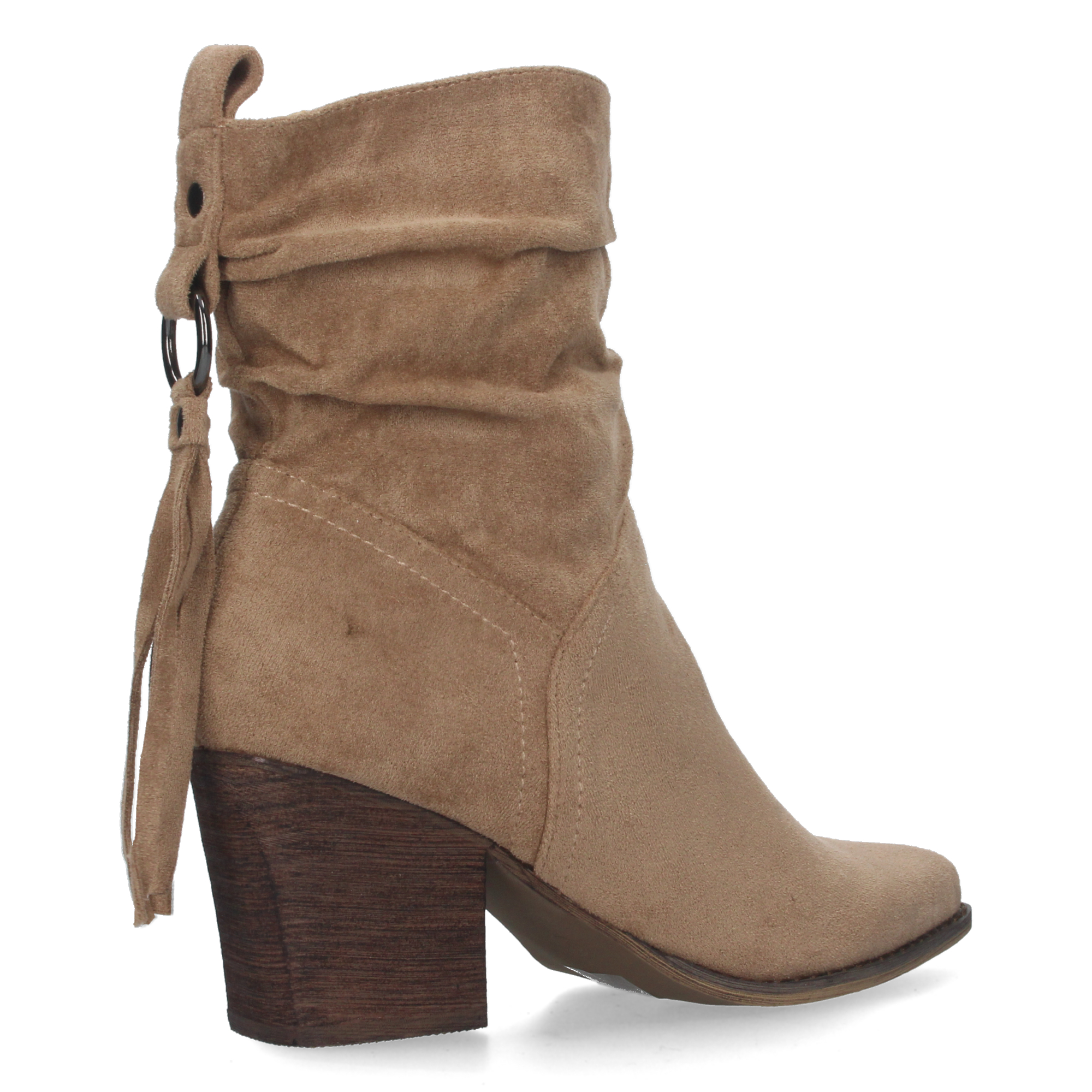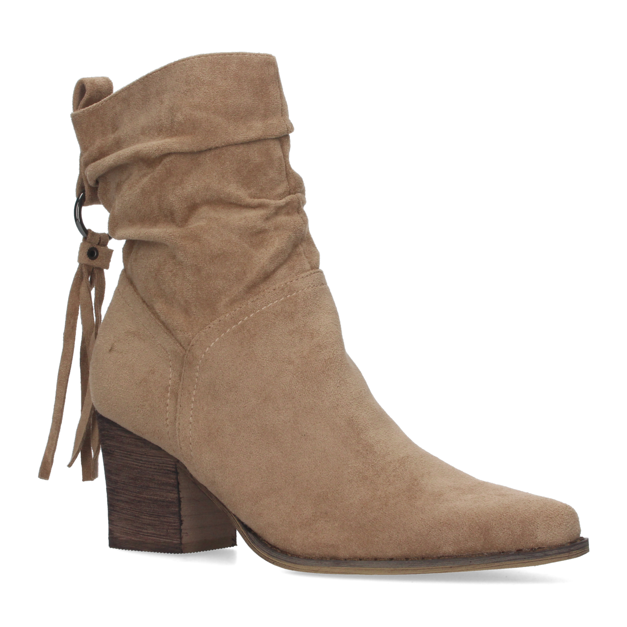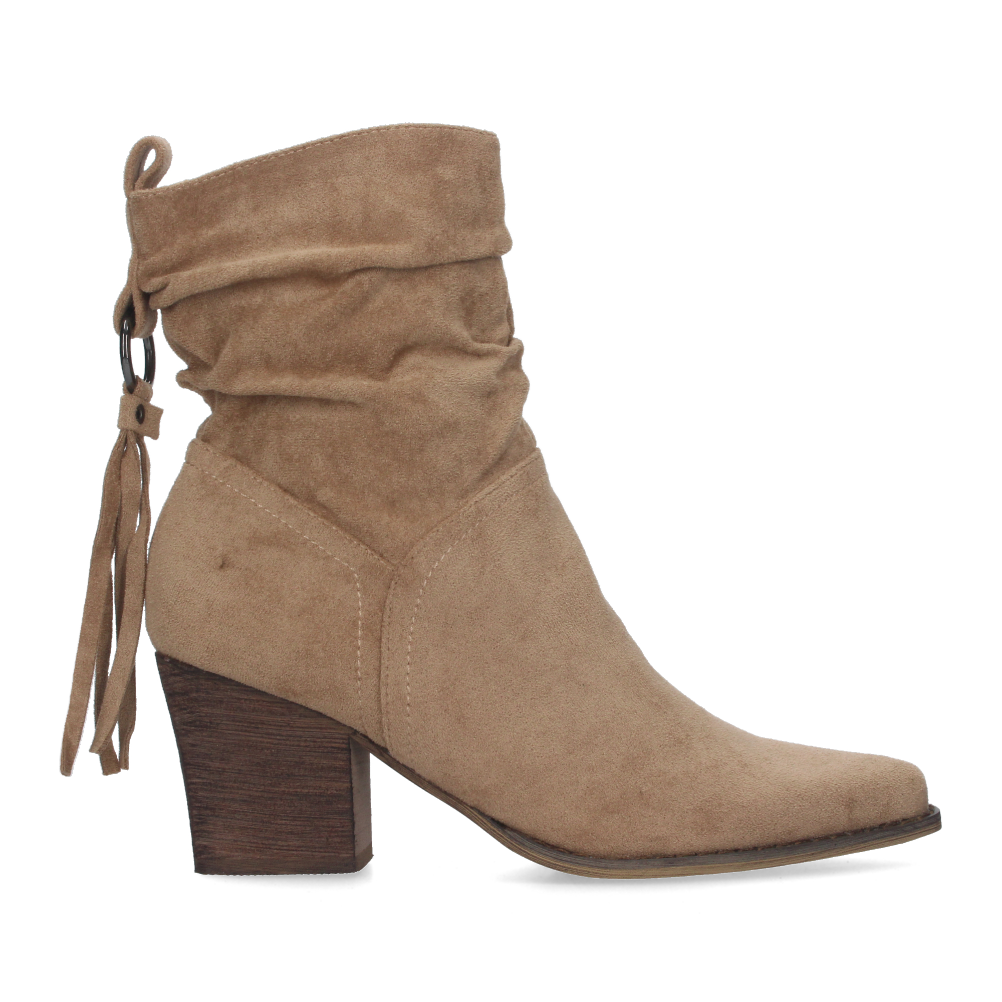 Botin de Tacon para Mujer de Punta Fina Caña Arrugada Flecos en el Talon y Cierre de Cremallera Otoño Invierno