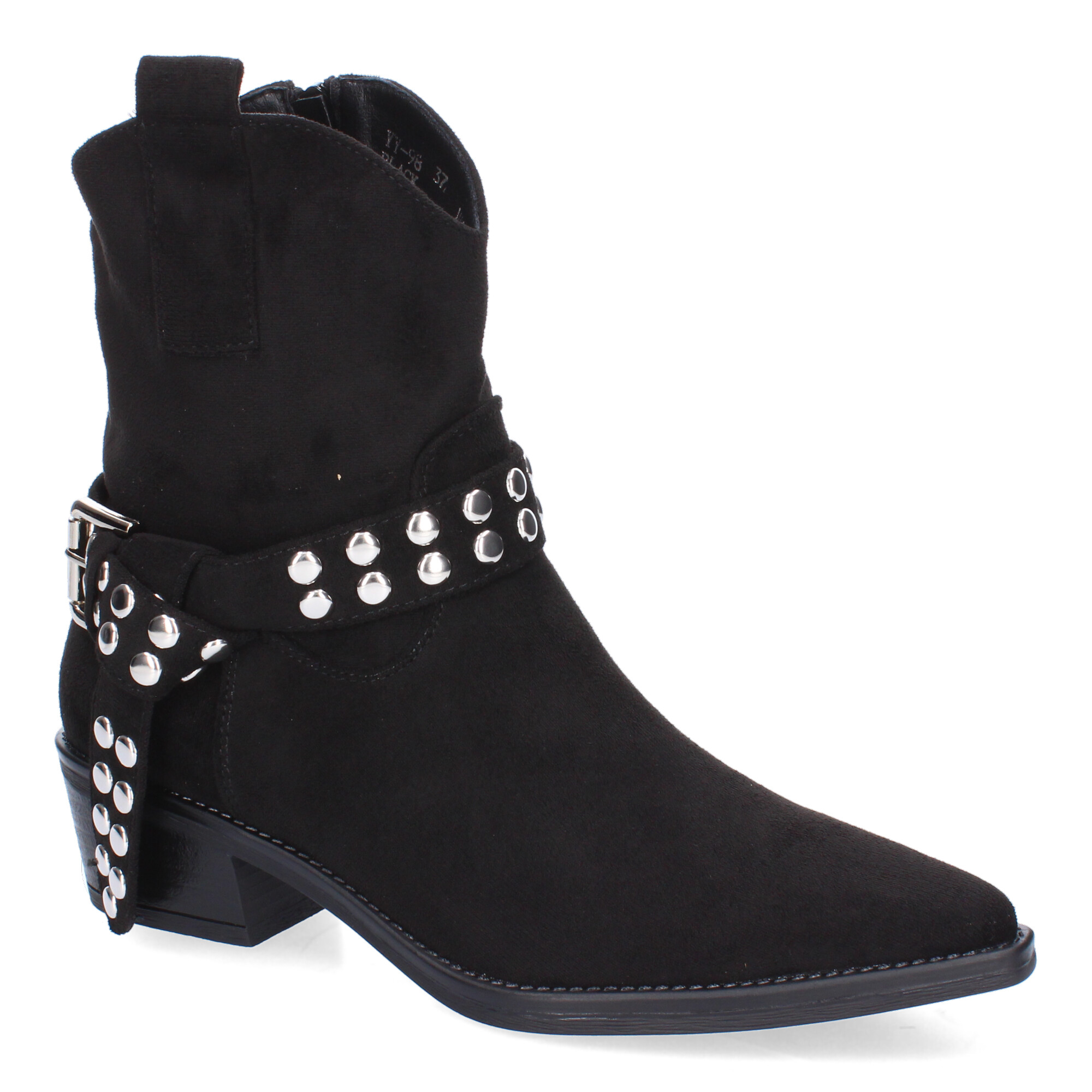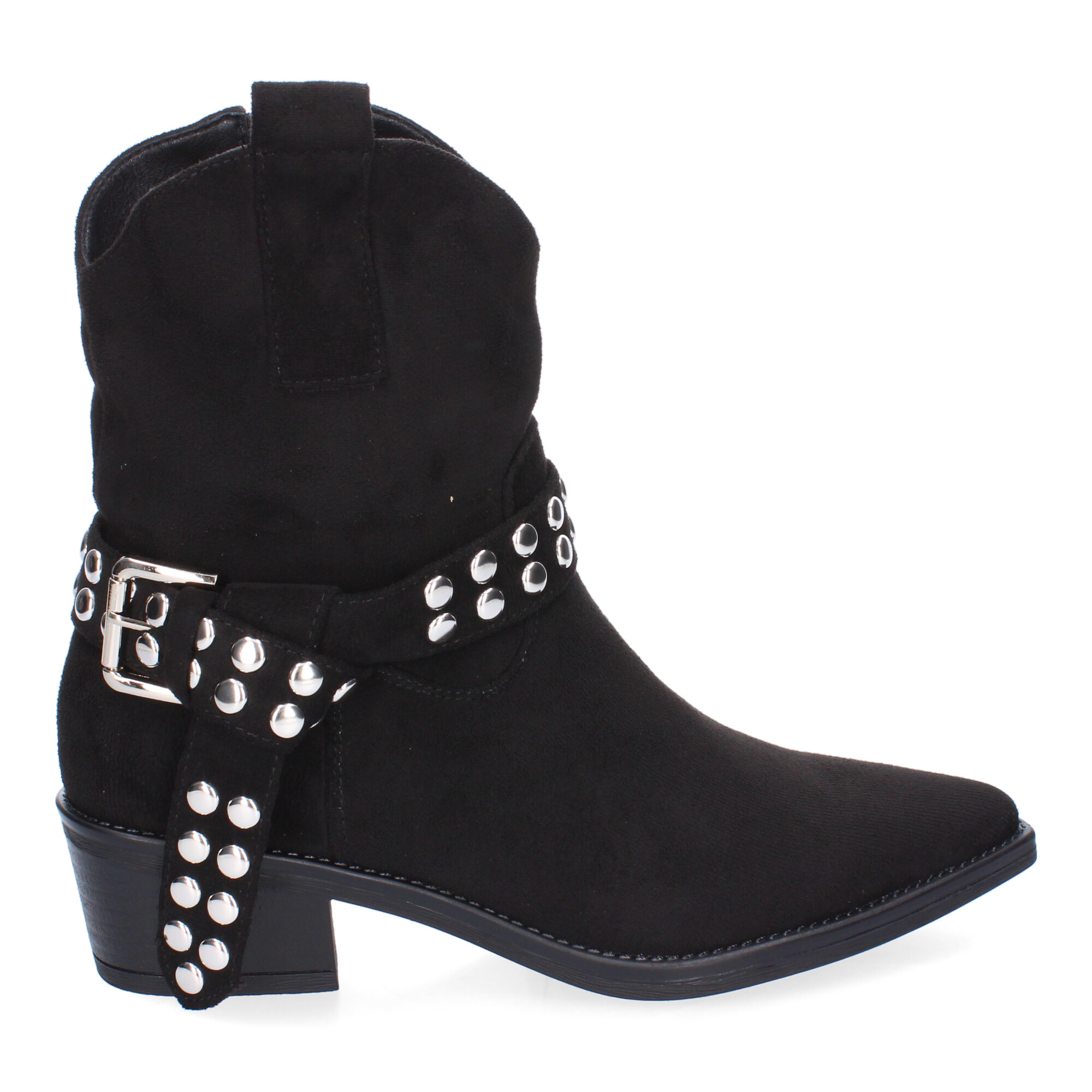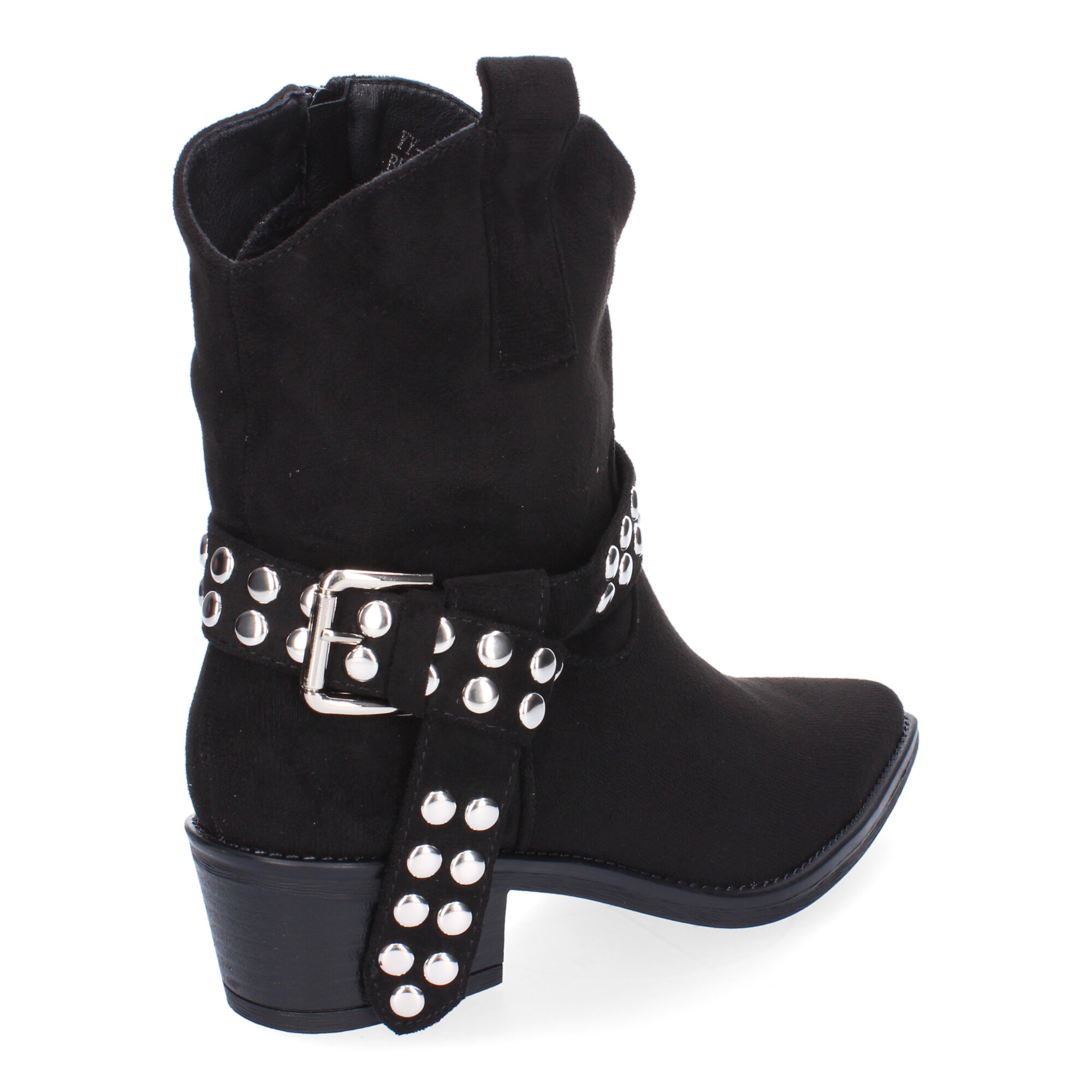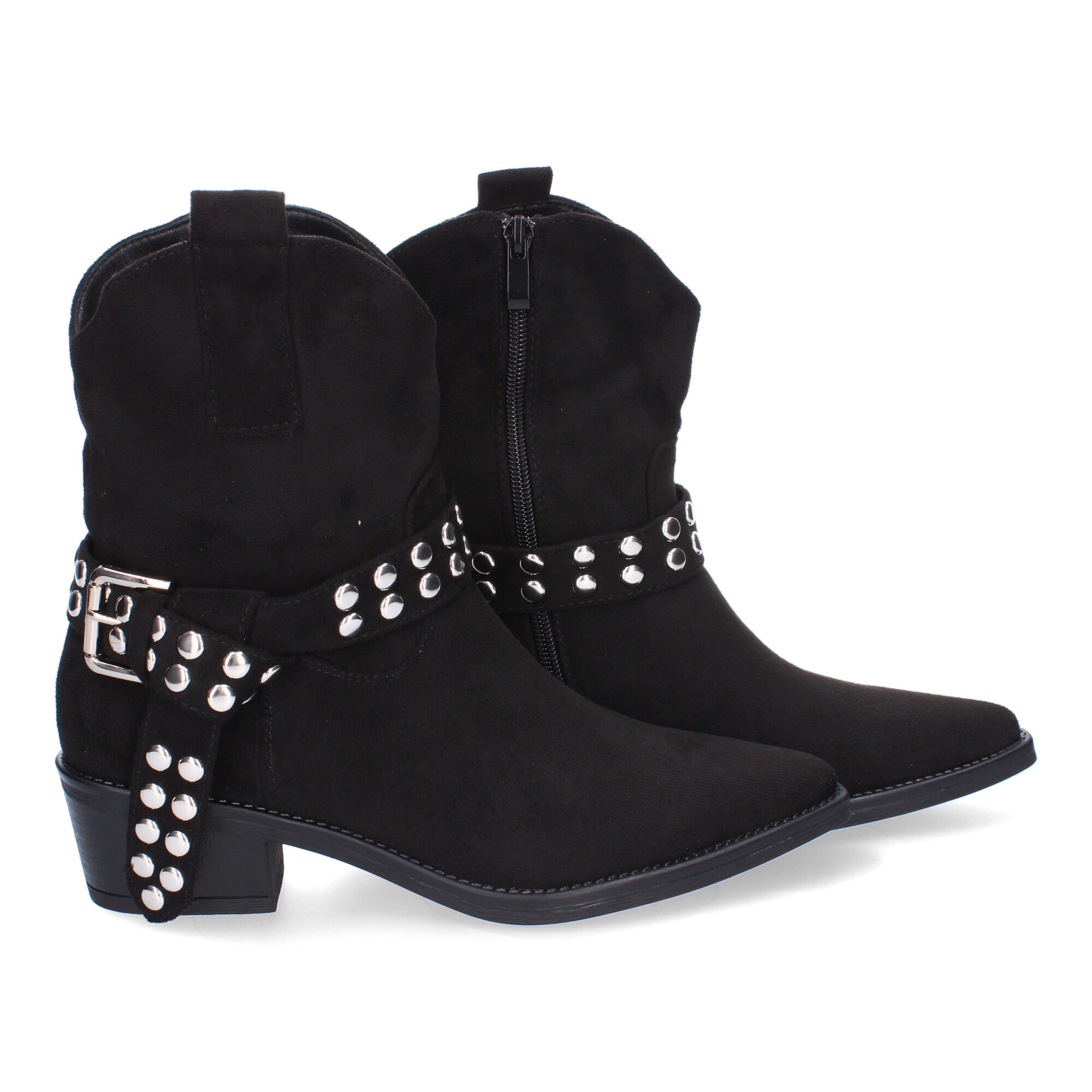 Botín de Tacón para Mujer Estilo Campero Comodas y Elegantes con Hebilla Decorativa y Tachuelas Diseño Moderno y Versátil.