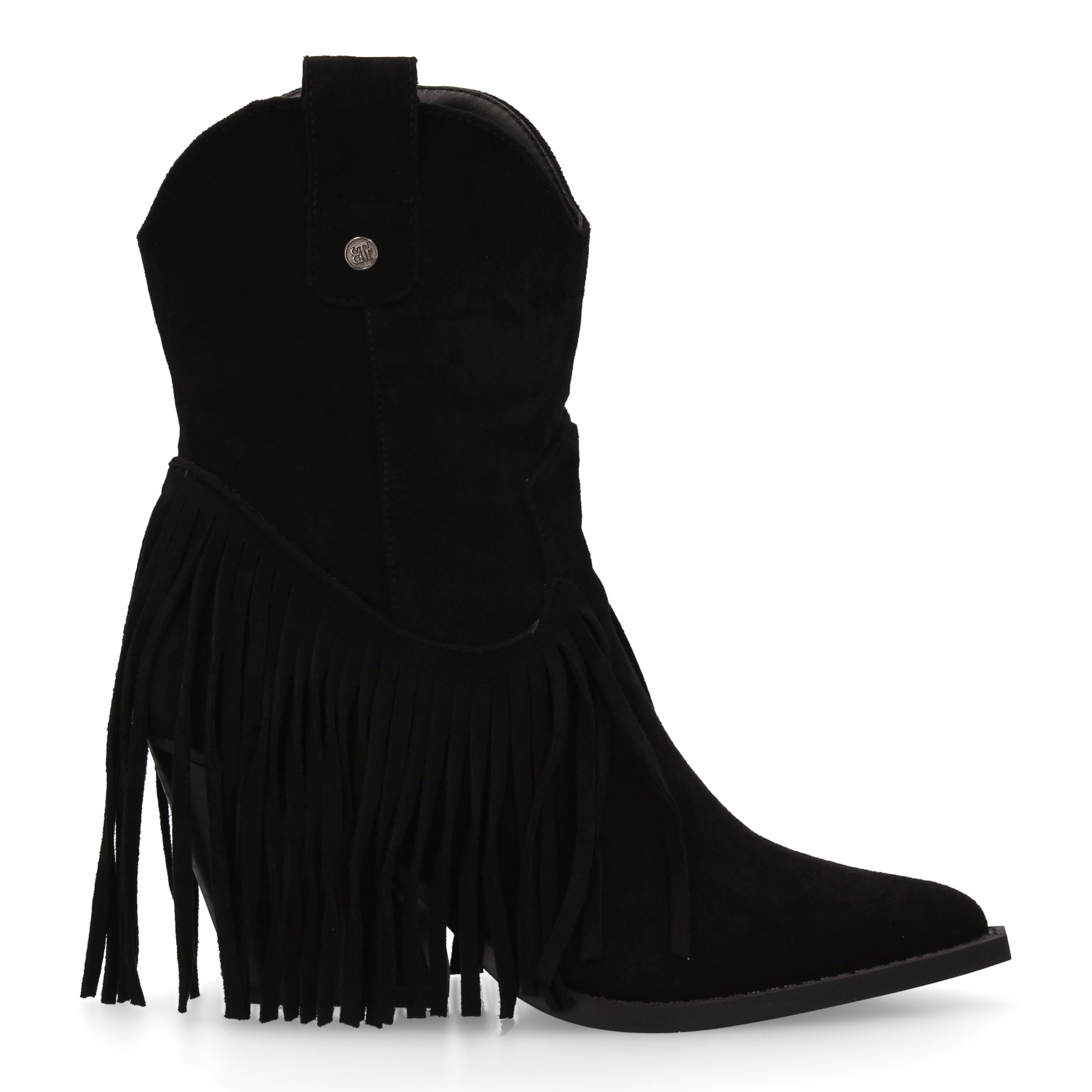 Botín de mujer con tacón estilo campero. Tacon cubano con flecos acabado en punta. Cierre de cremallera. Ideales otoño invierno.