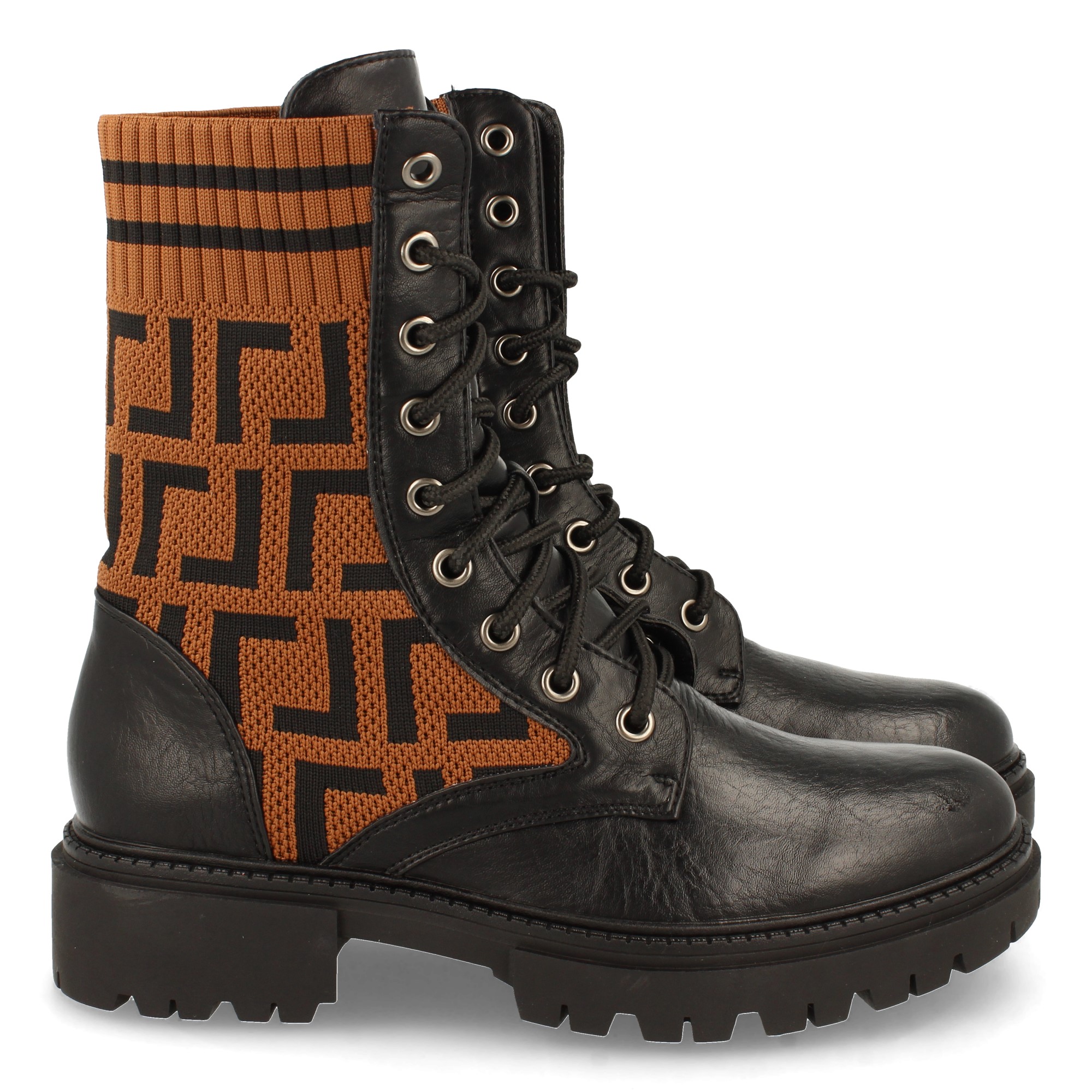 Botin Plano para Mujer con Grabados Etnicos en el Elastico y Cierre de Cordones Otoño Invierno 2021