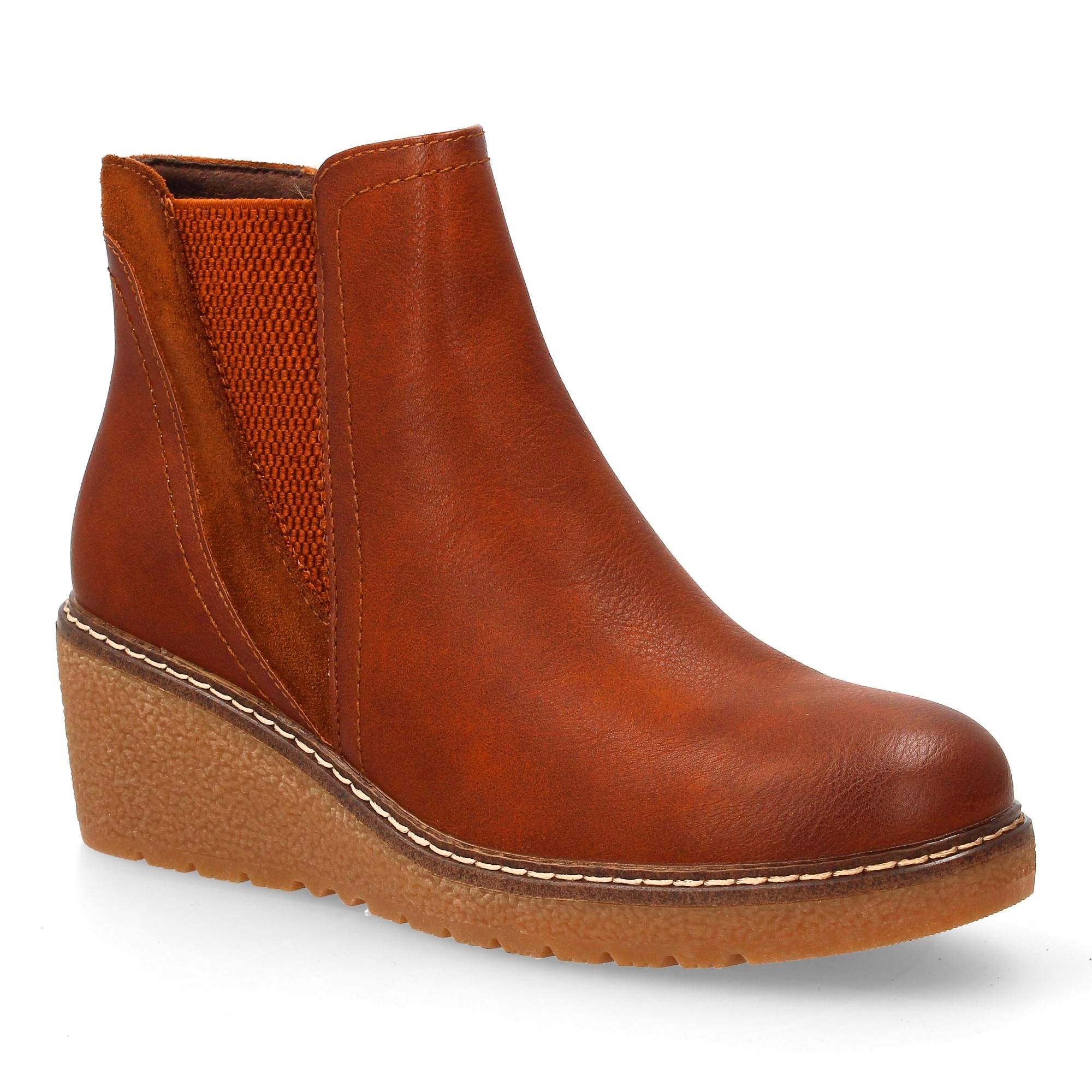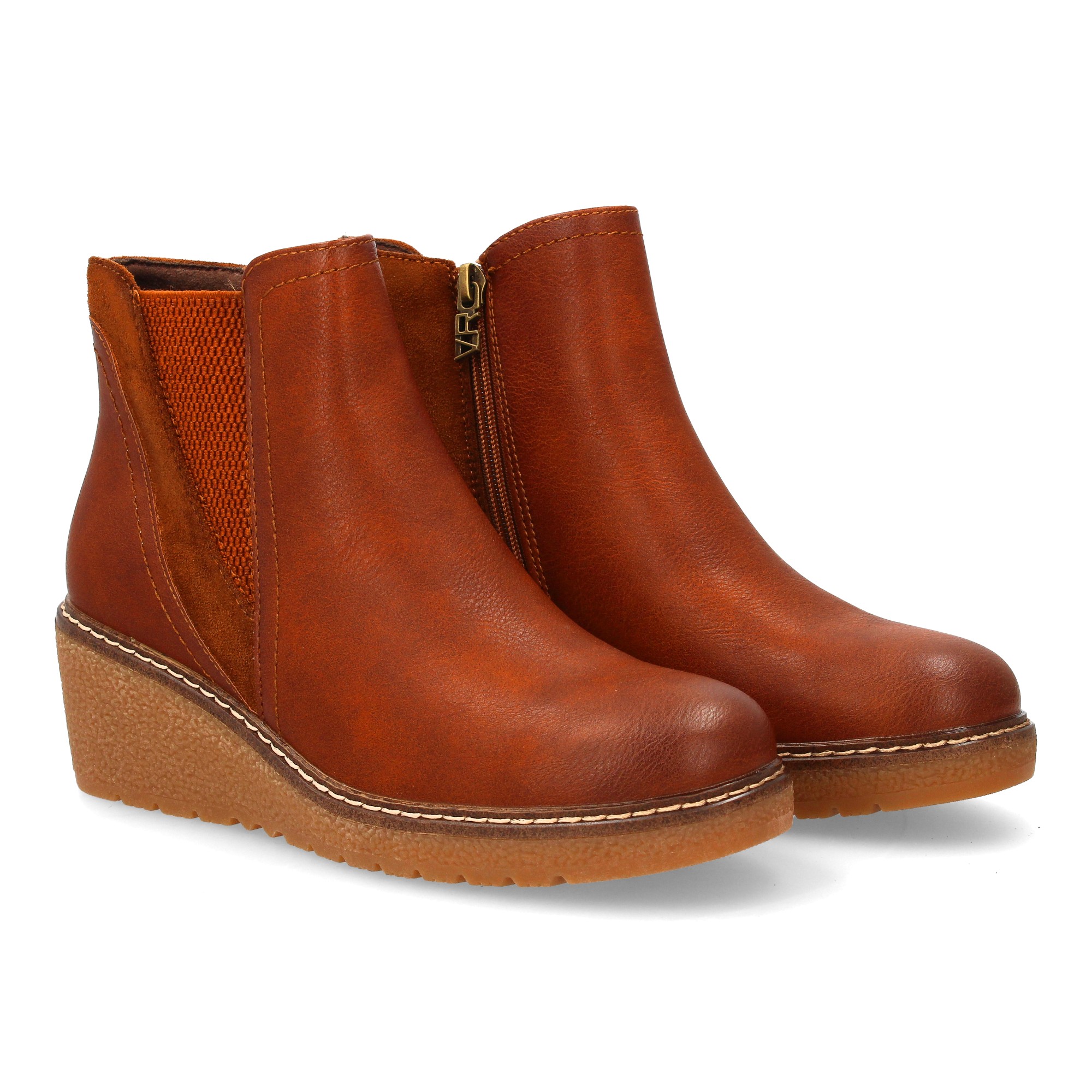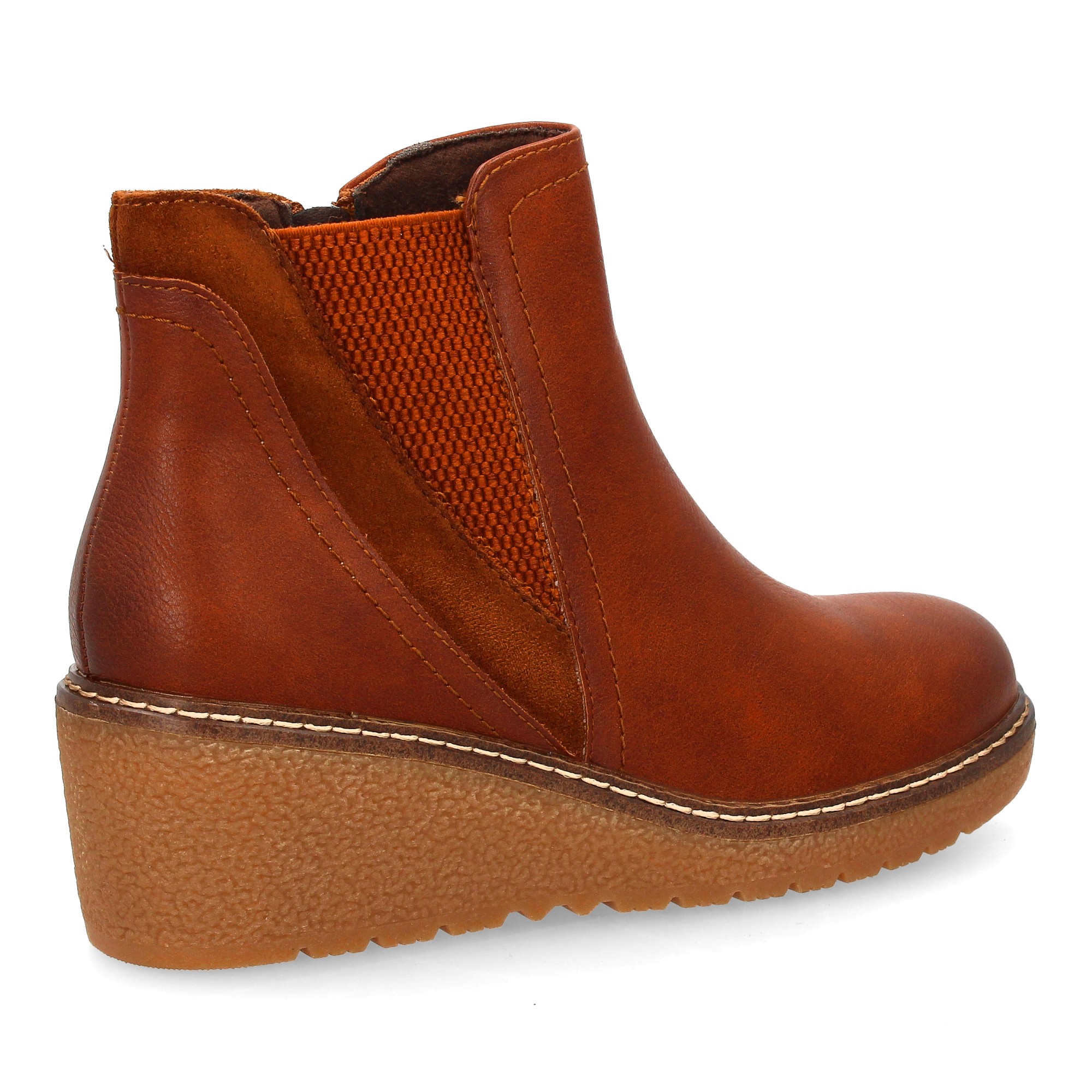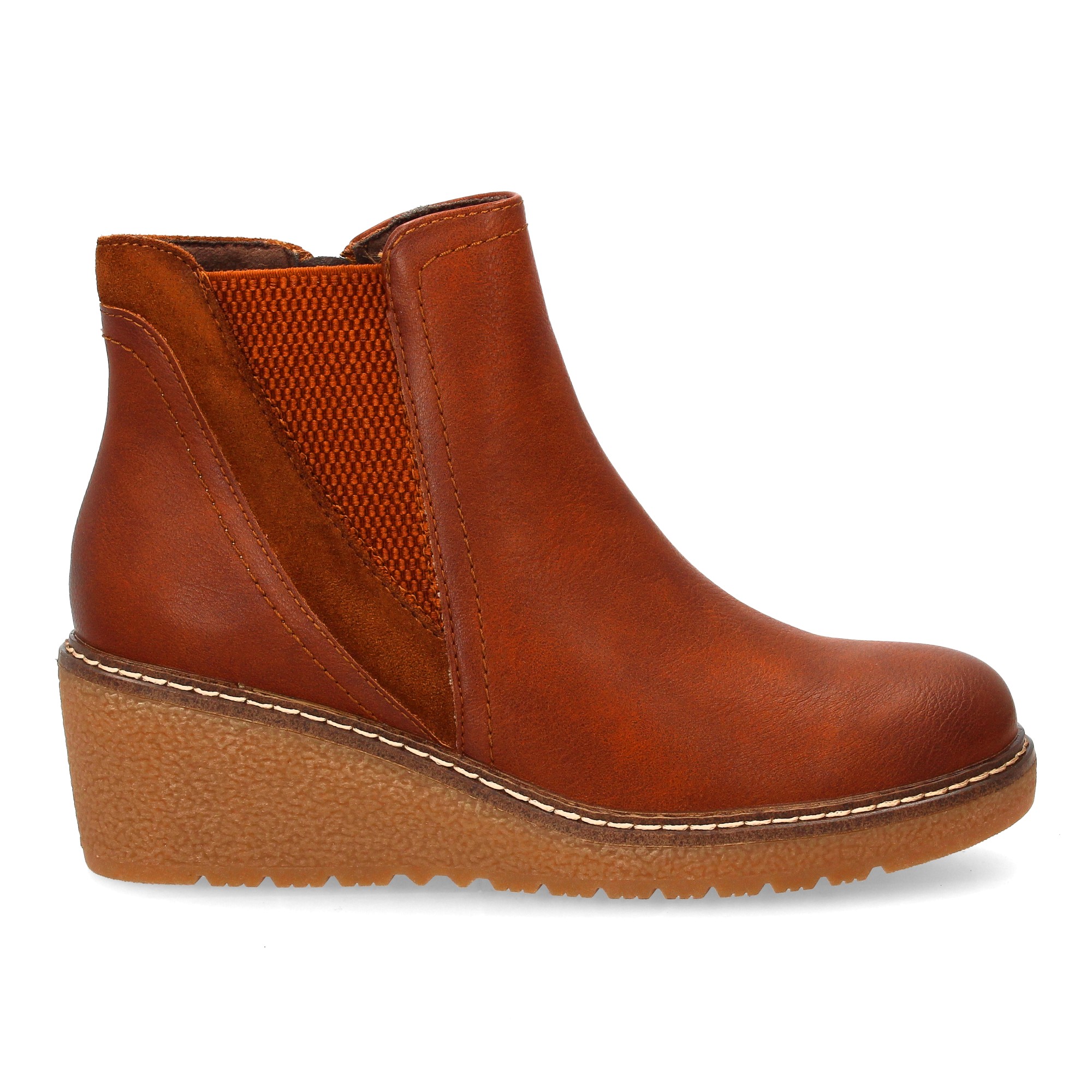 Botín para mujer con cuña y elástico en el lateral estampado liso y cierre de cremallera. Ideal para la temporada de otoño invierno. Comodo para uso diario.