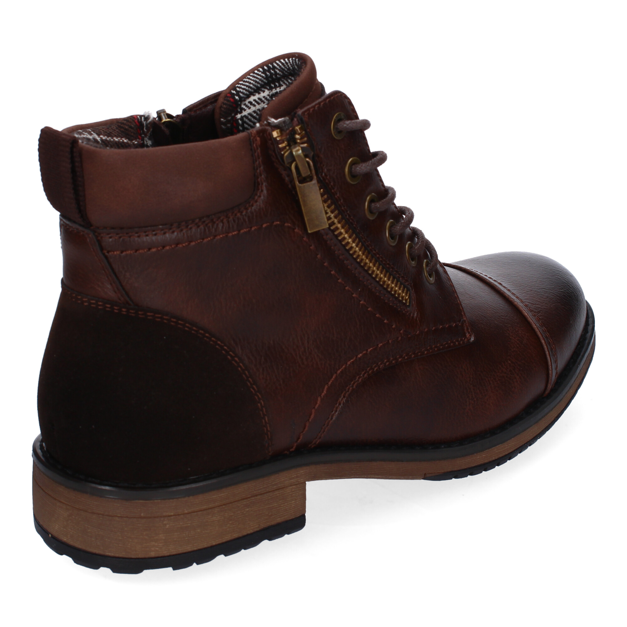 Botines de Hombre Comodos y Elegantes Diseño Clasico con Punta Redonda Adorno de Cremallera Cierre de Cordones y Cremallera Lateral.