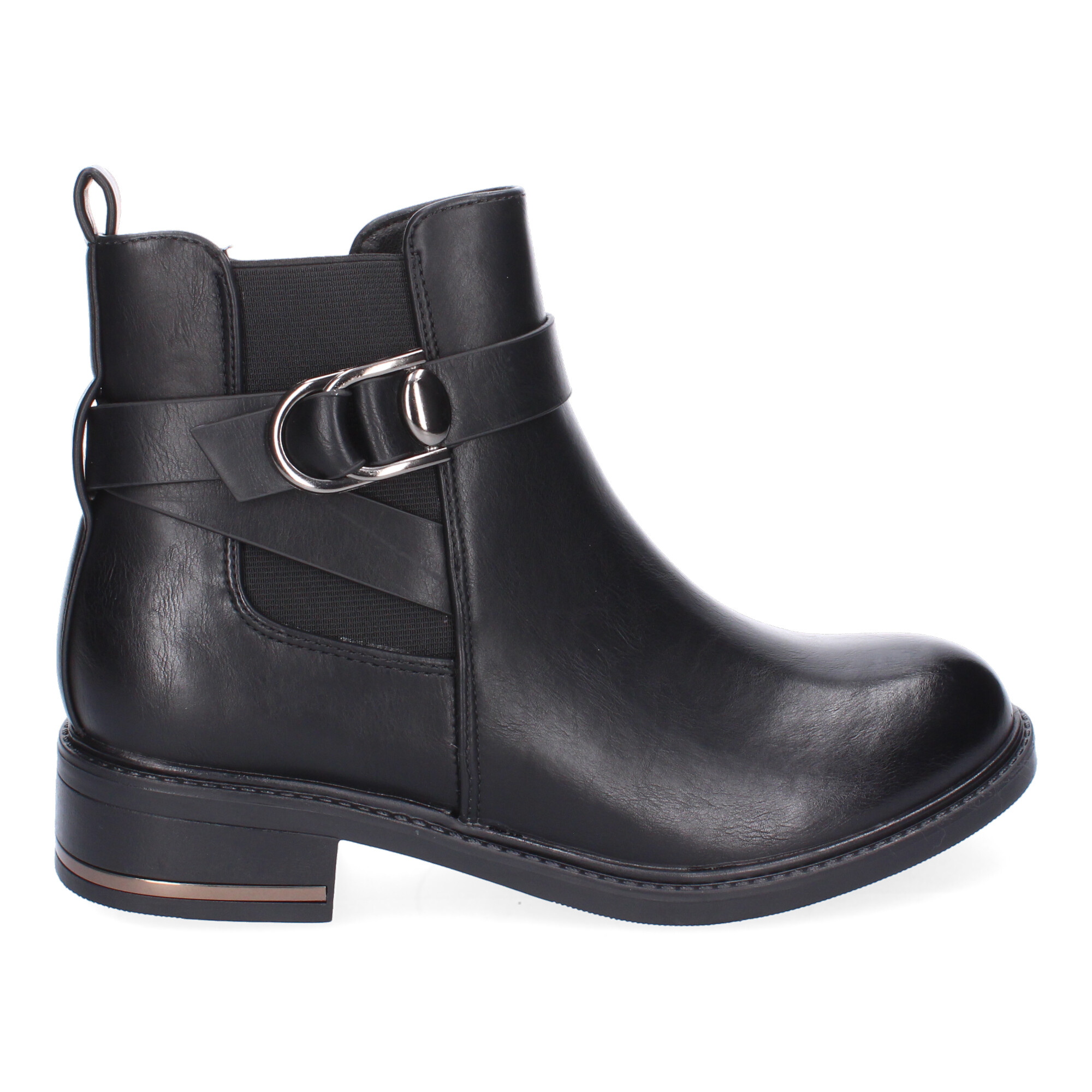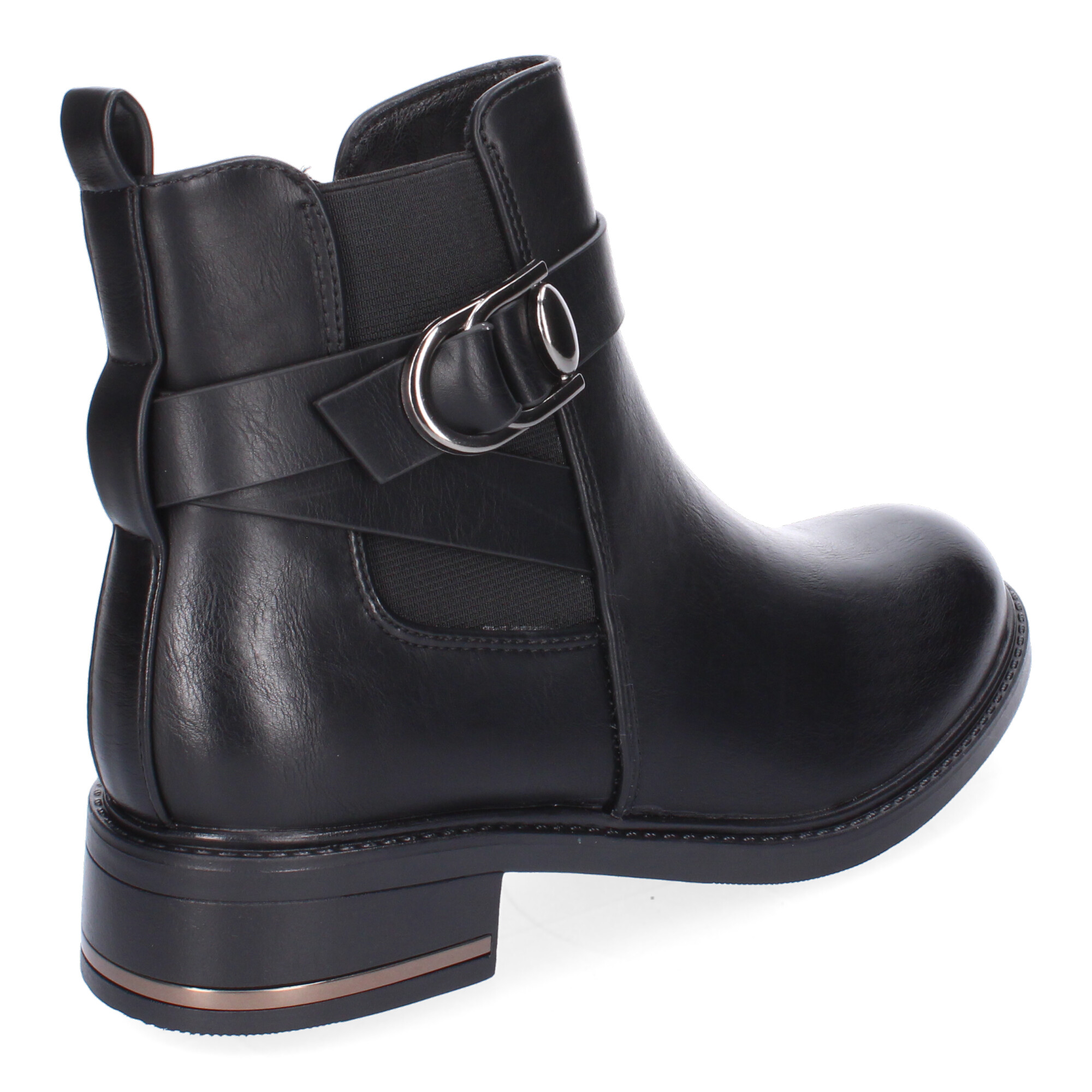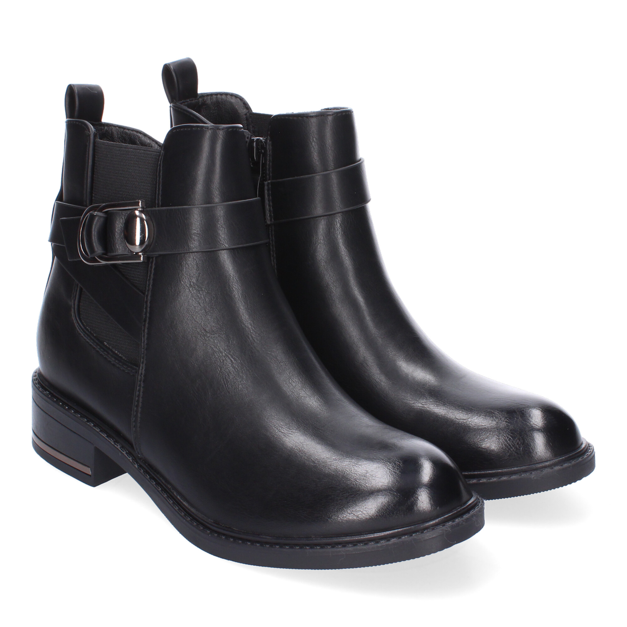 Botines de Mujer Comodos y Elegantes con Detalle de Hebilla Material Elástico Punta Redonda y Cierre de Cremallera Lateral Ideales para Otoño-Invierno.