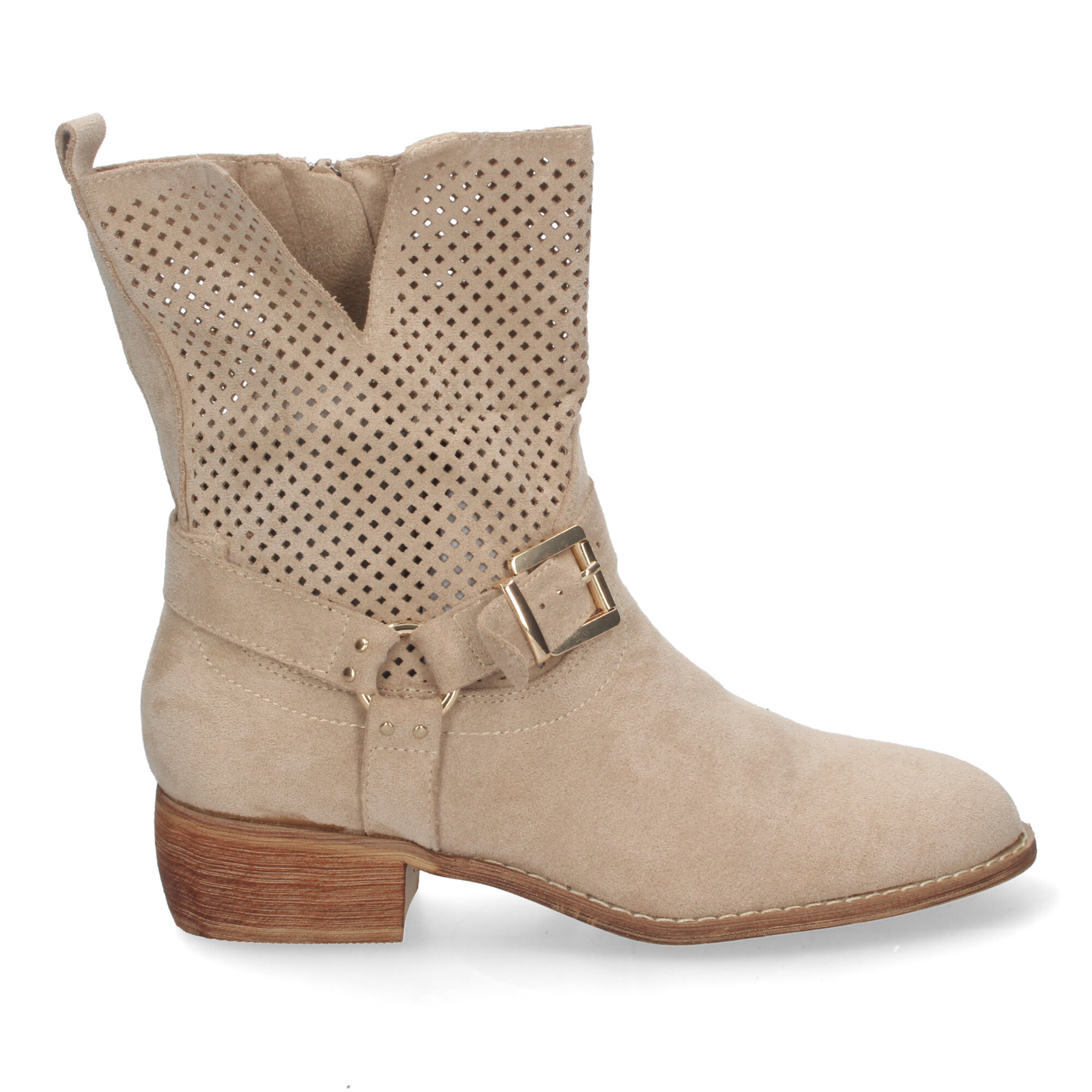 Botines de Mujer con Tacón Cómodos Diseño Calado Cierre de Cremallera Lateral y de Hebilla.