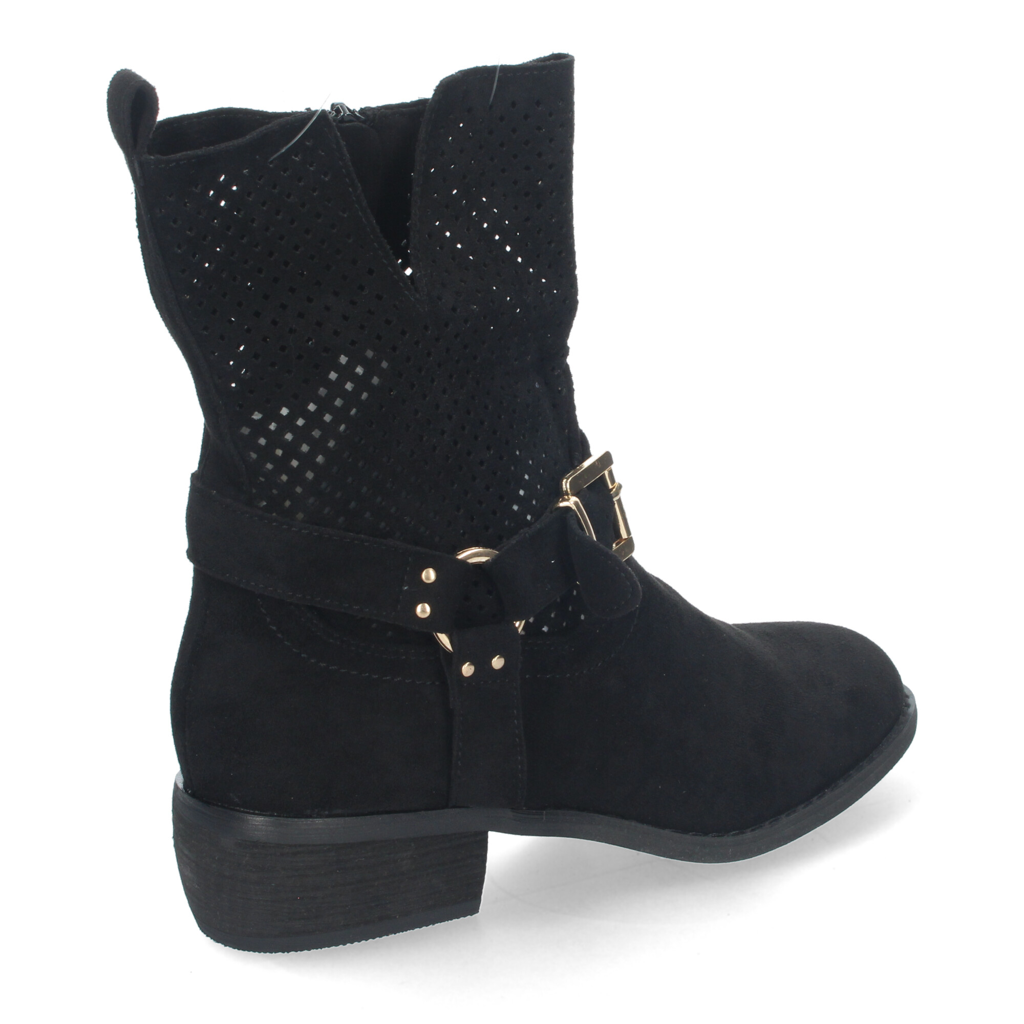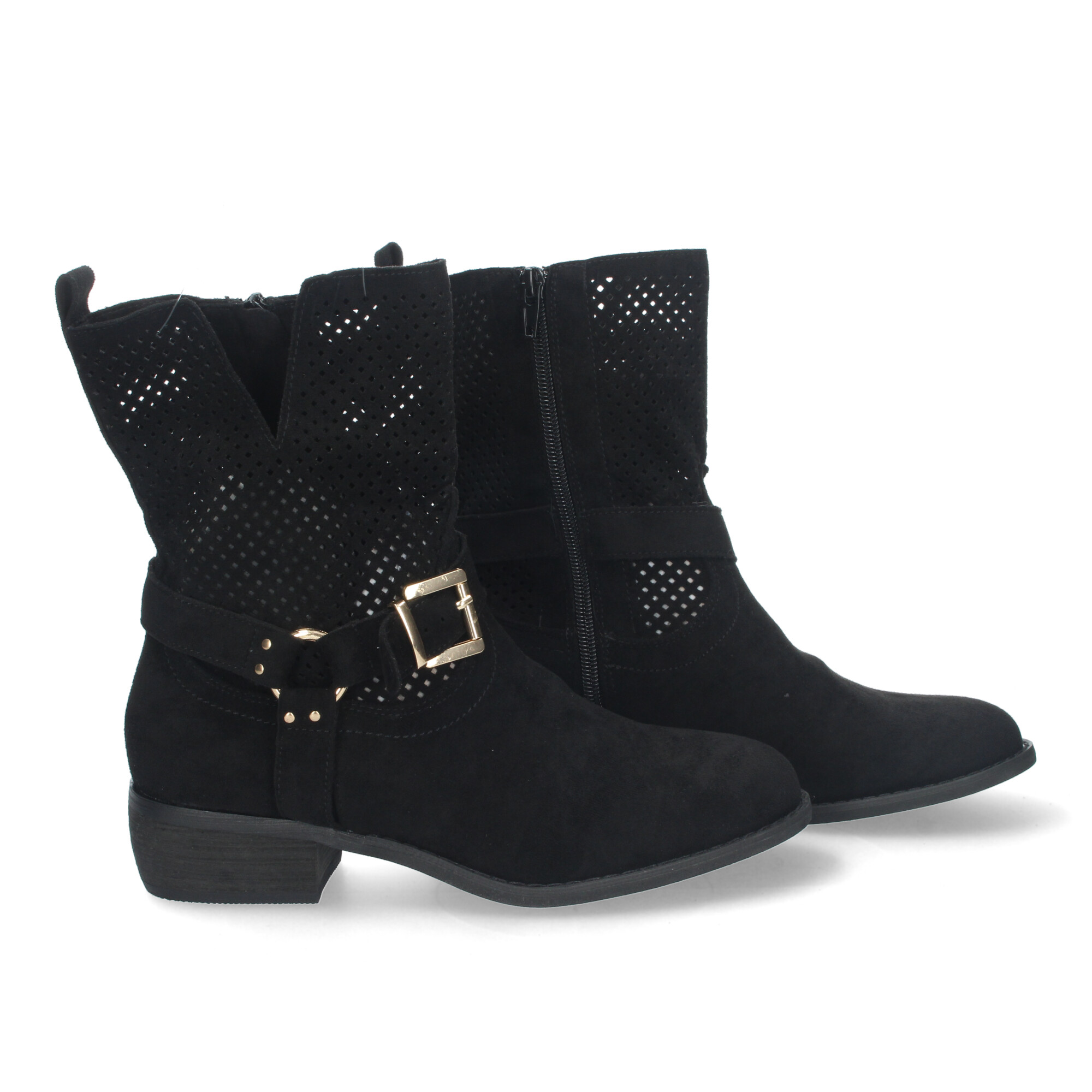Botines de Mujer con Tacón Cómodos Diseño Calado Cierre de Cremallera Lateral y de Hebilla.