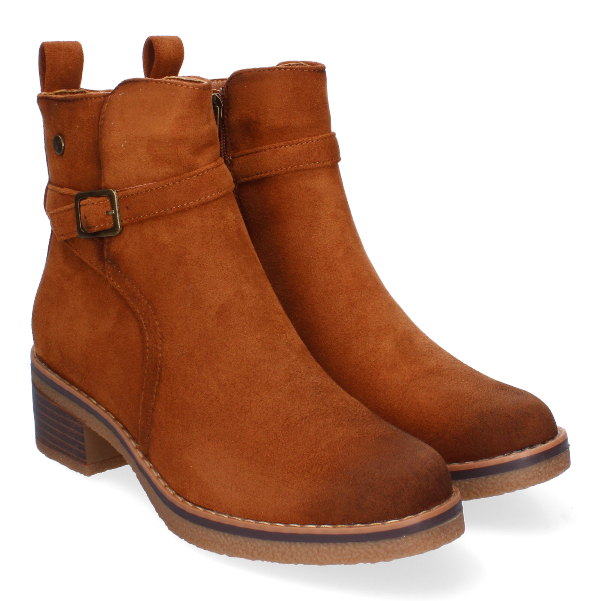 Botines de Tacón para Mujer Cómodos y Elegantes Cierre de Cremallera Lateral Hebilla Decorativa y Puntera Redonda.