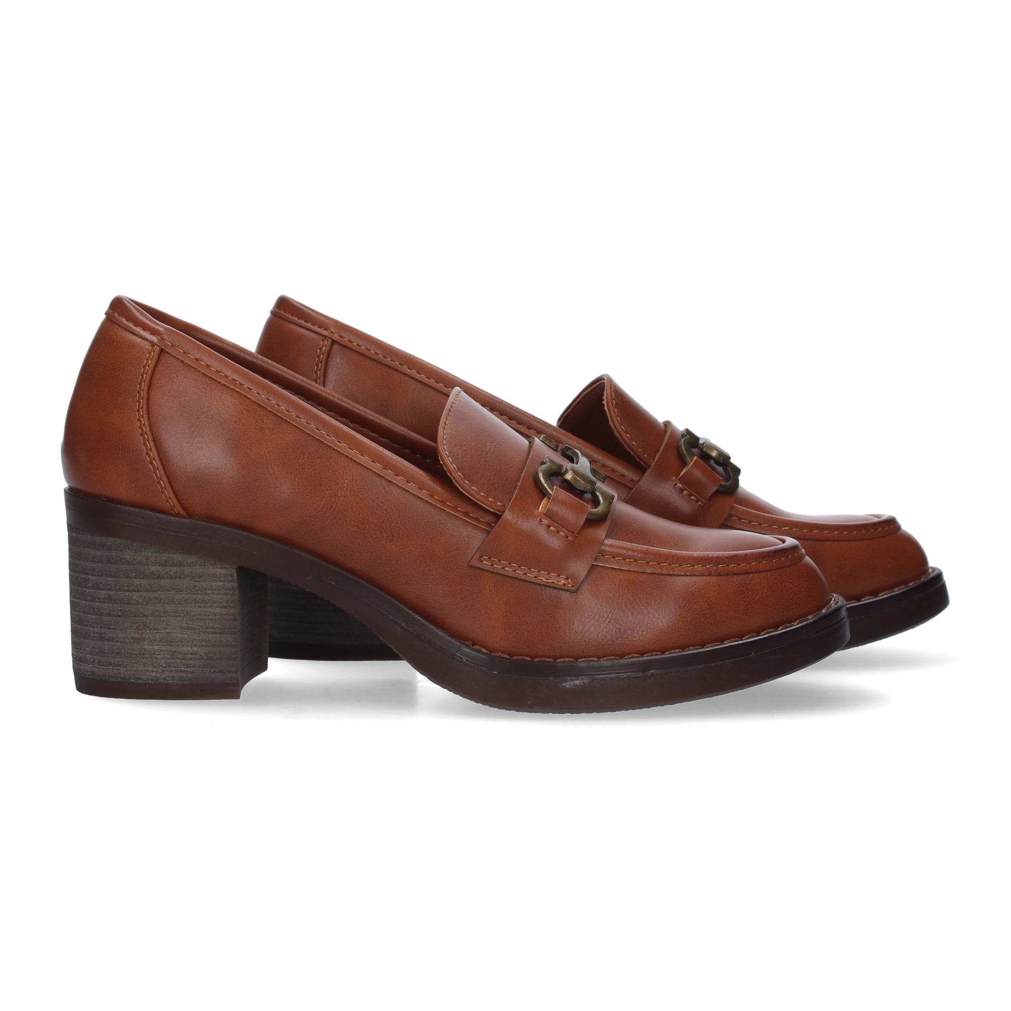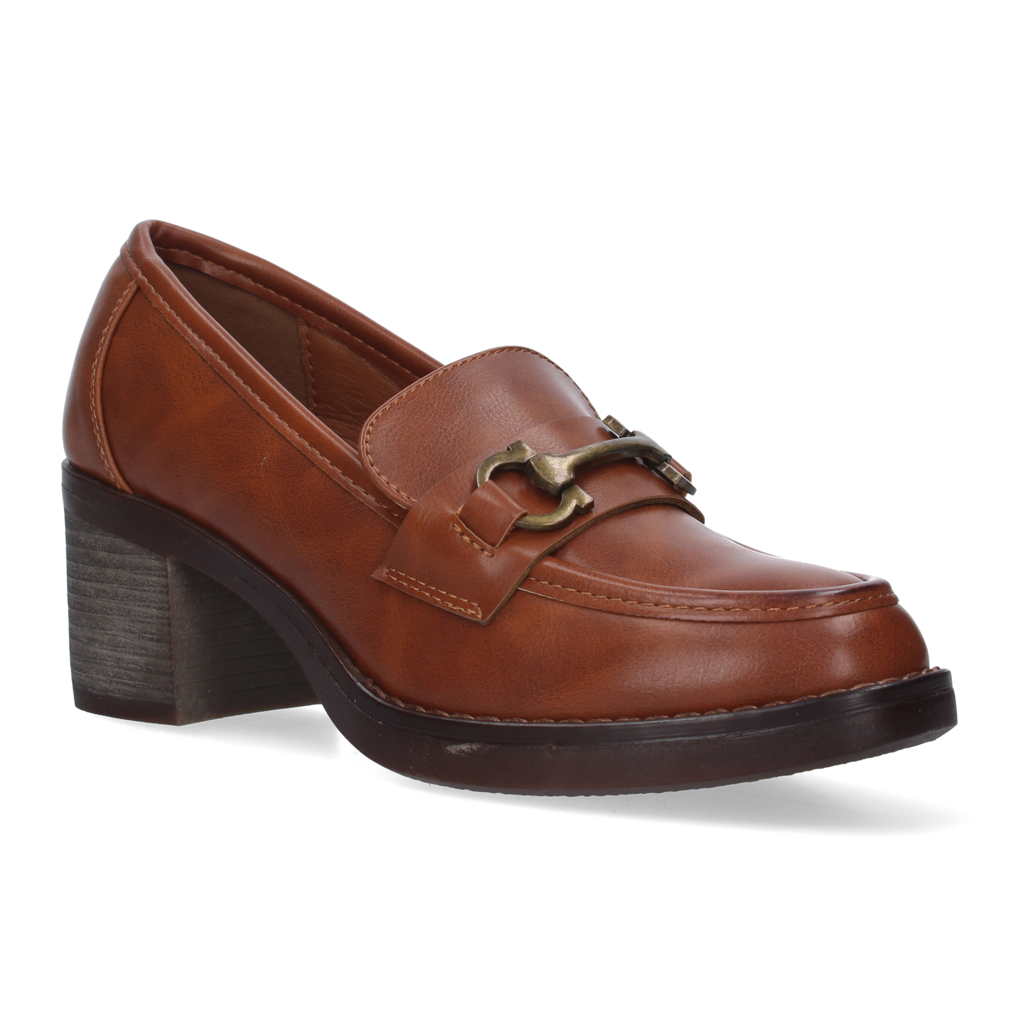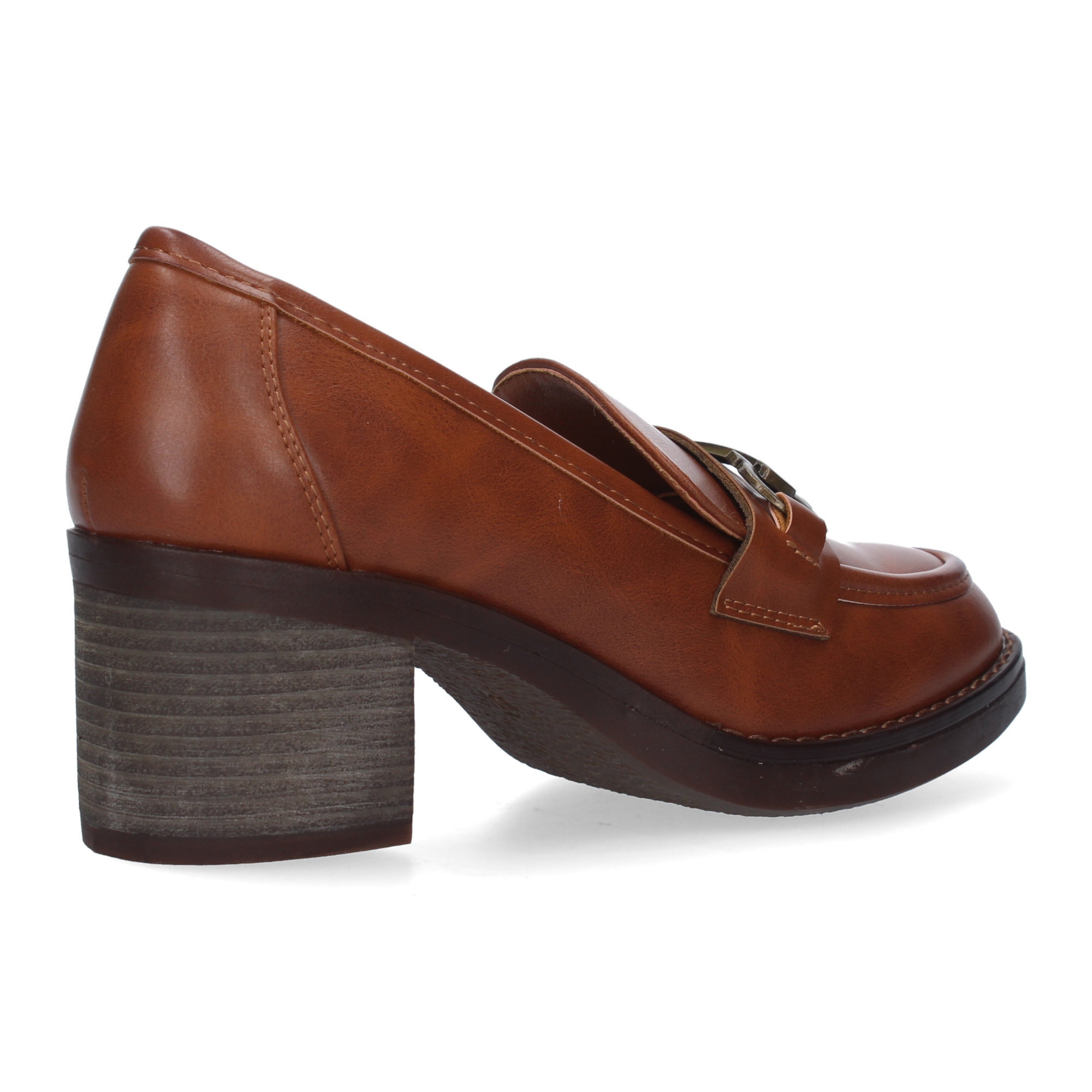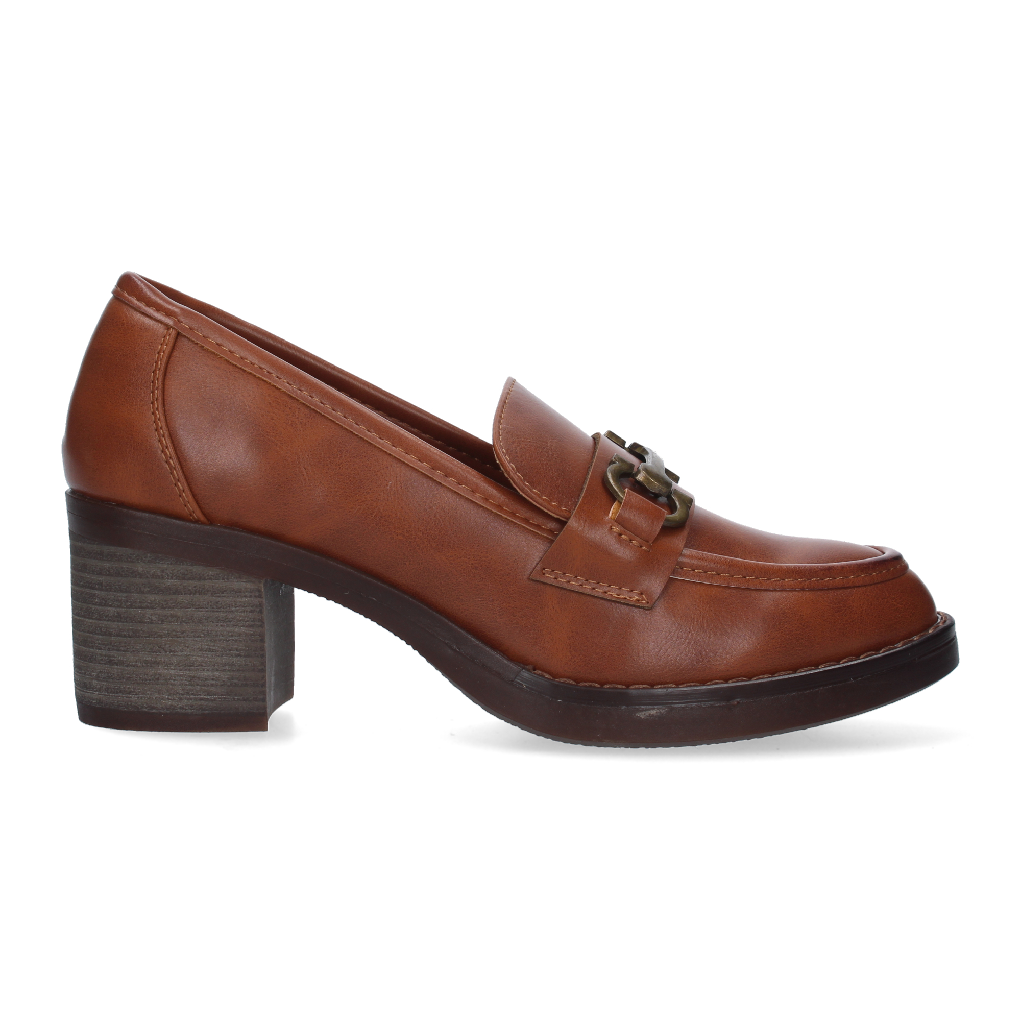 Mocasin de tacon para mujer comodos con adorno metálico en la pala.