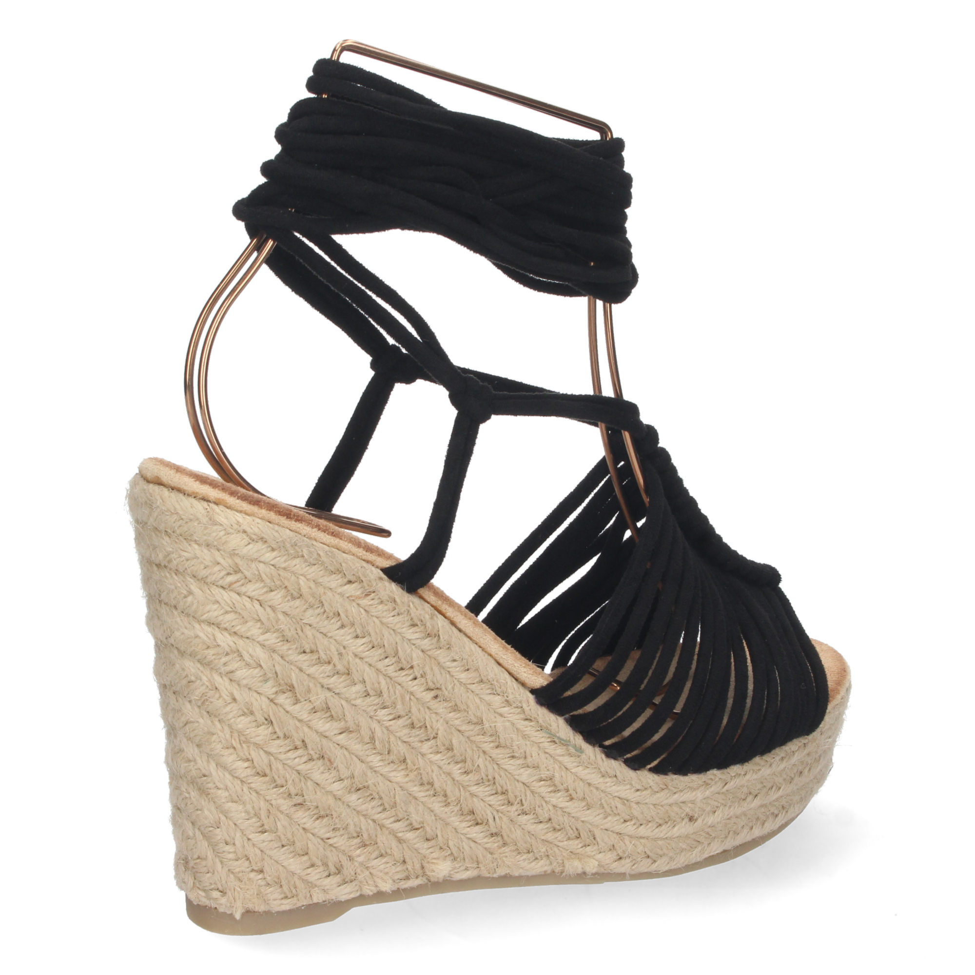 Sandalia de Cuña para Mujer Forrada de Yute con Pala de Tiras y Cierre de Cordones Primavera Verano 2022