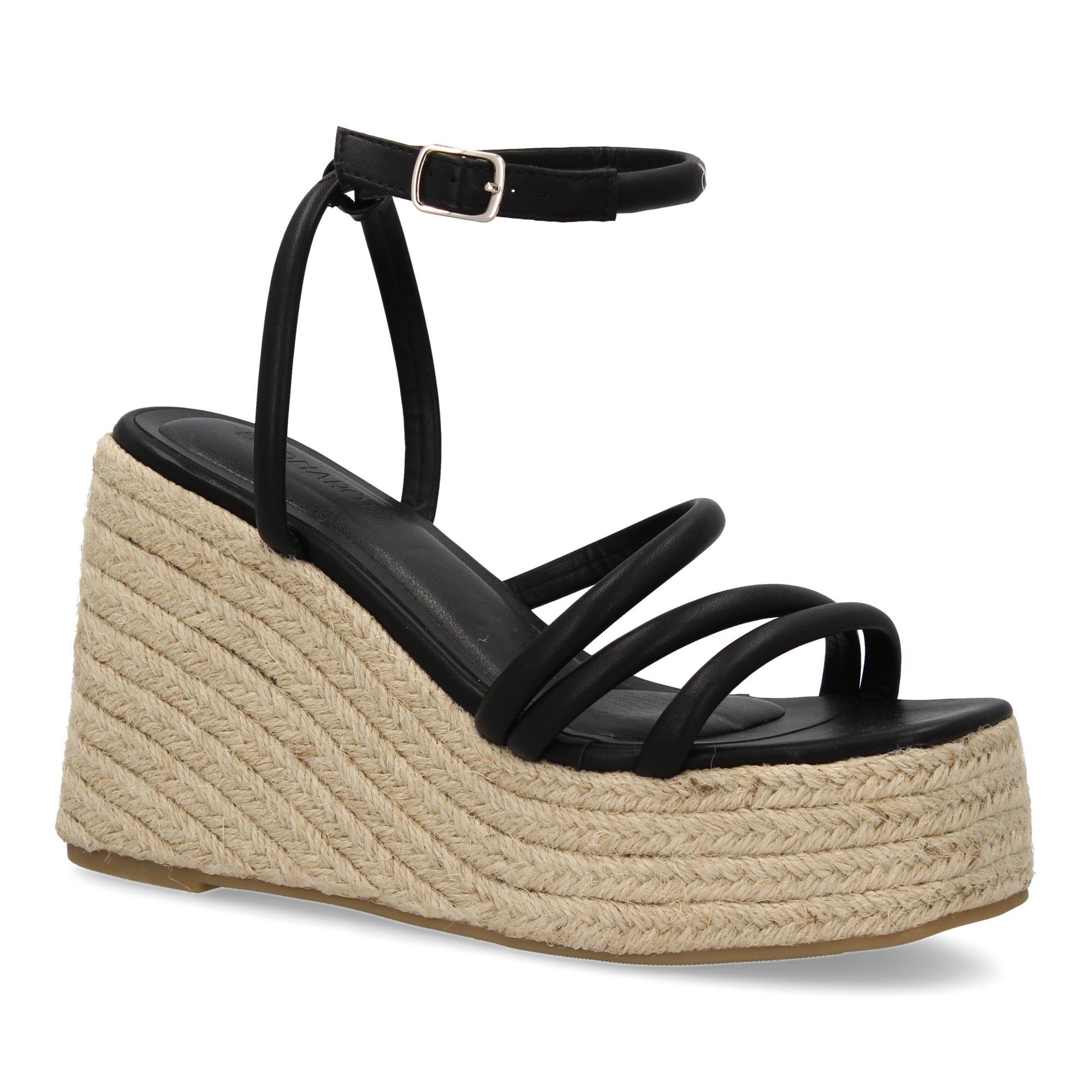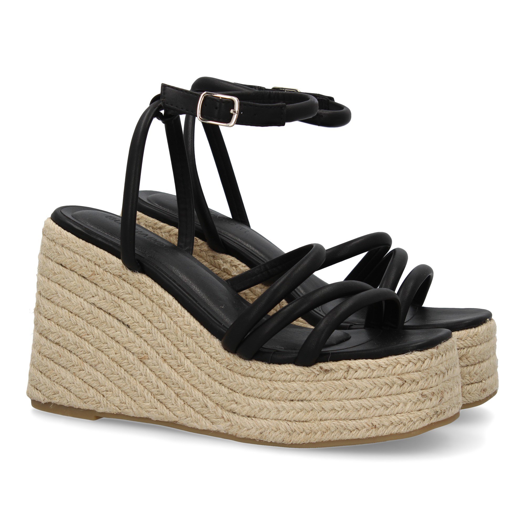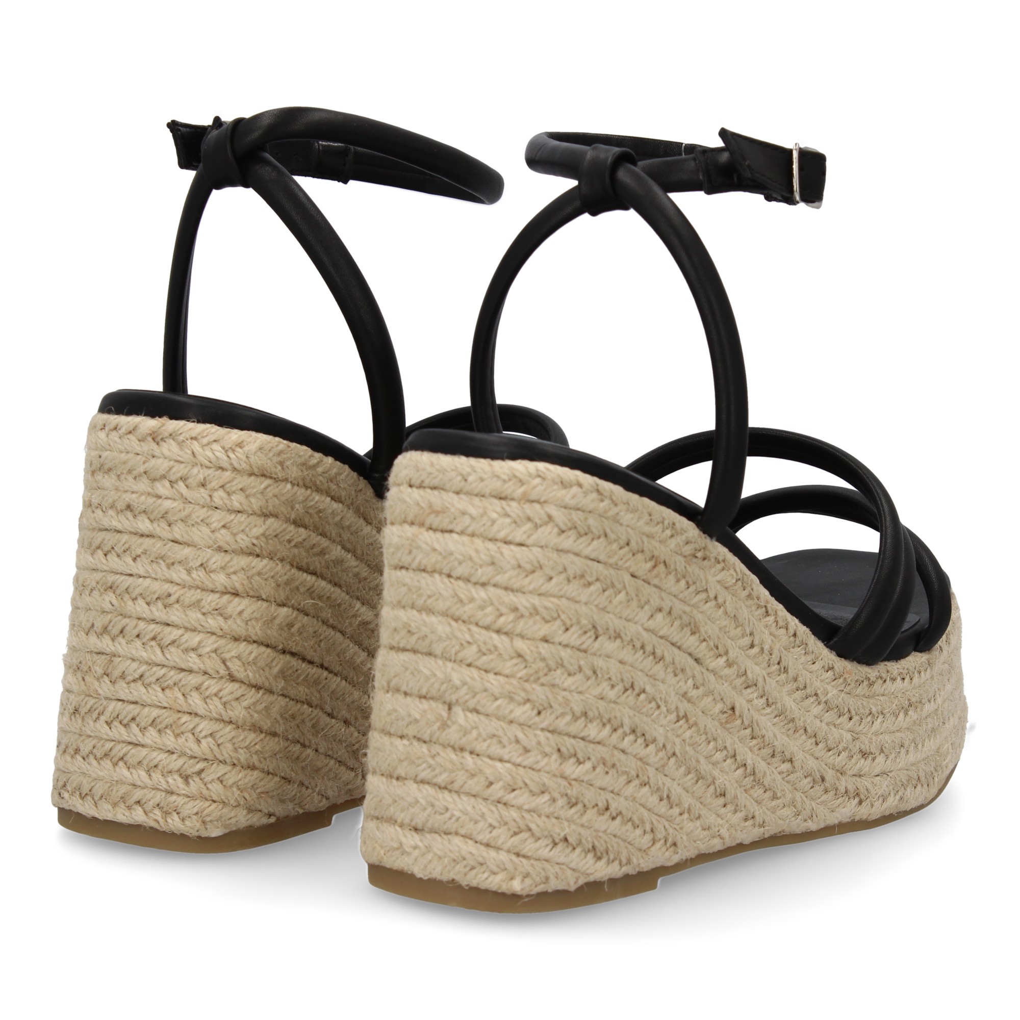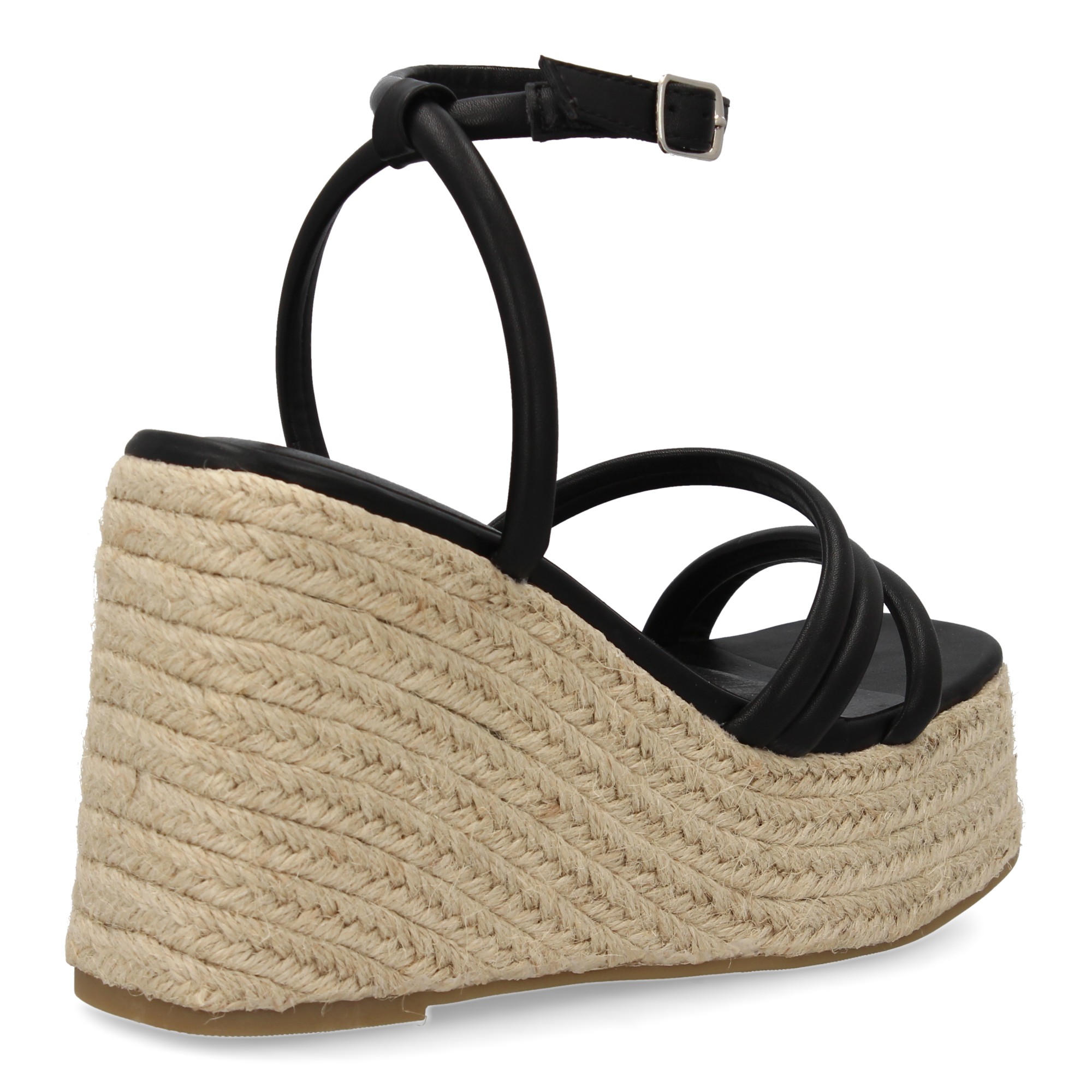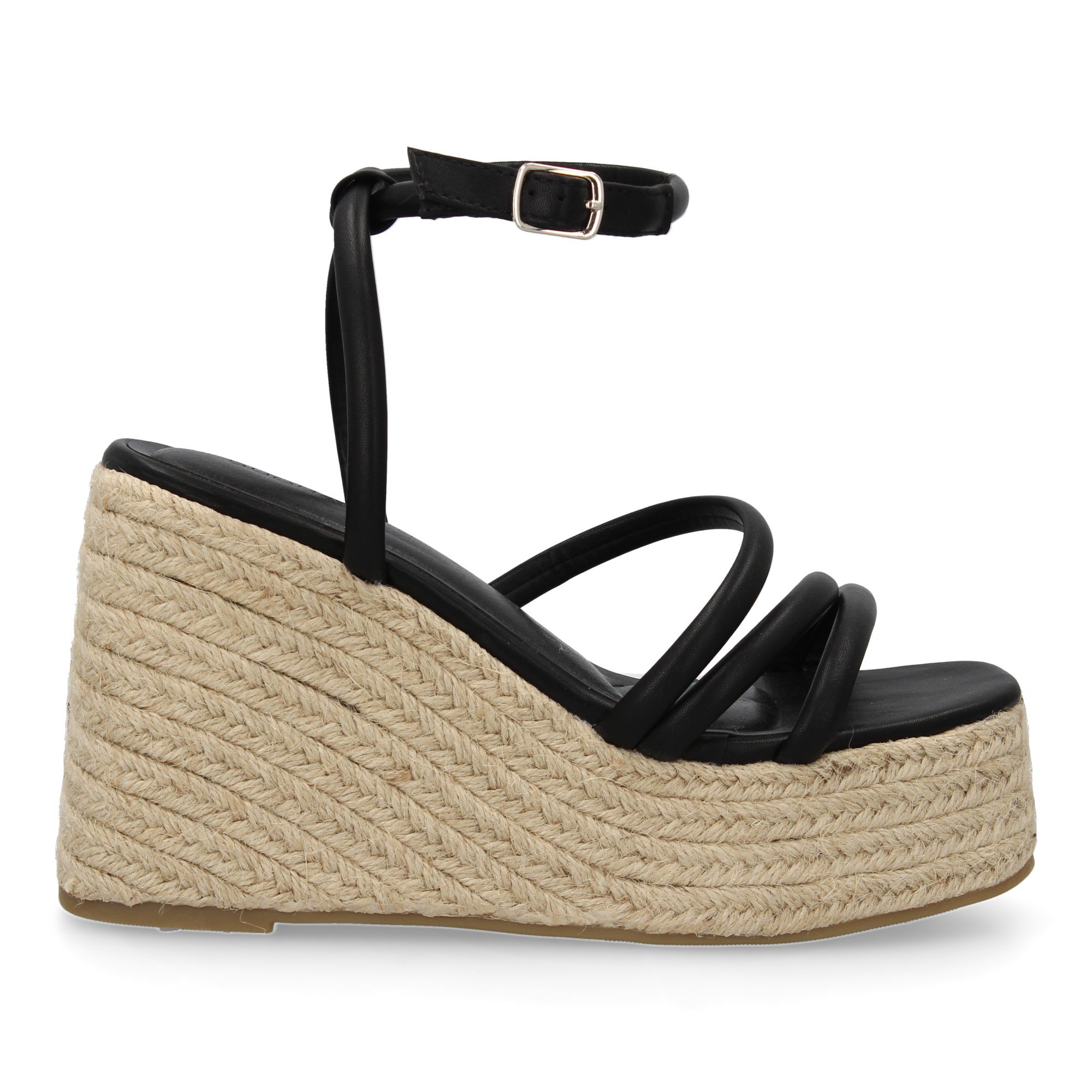 Sandalia de cuña de yute para mujer diseño comodo y elegante con tiras cruzadas en la pala y cierre de hebilla ideales para primavera verano.