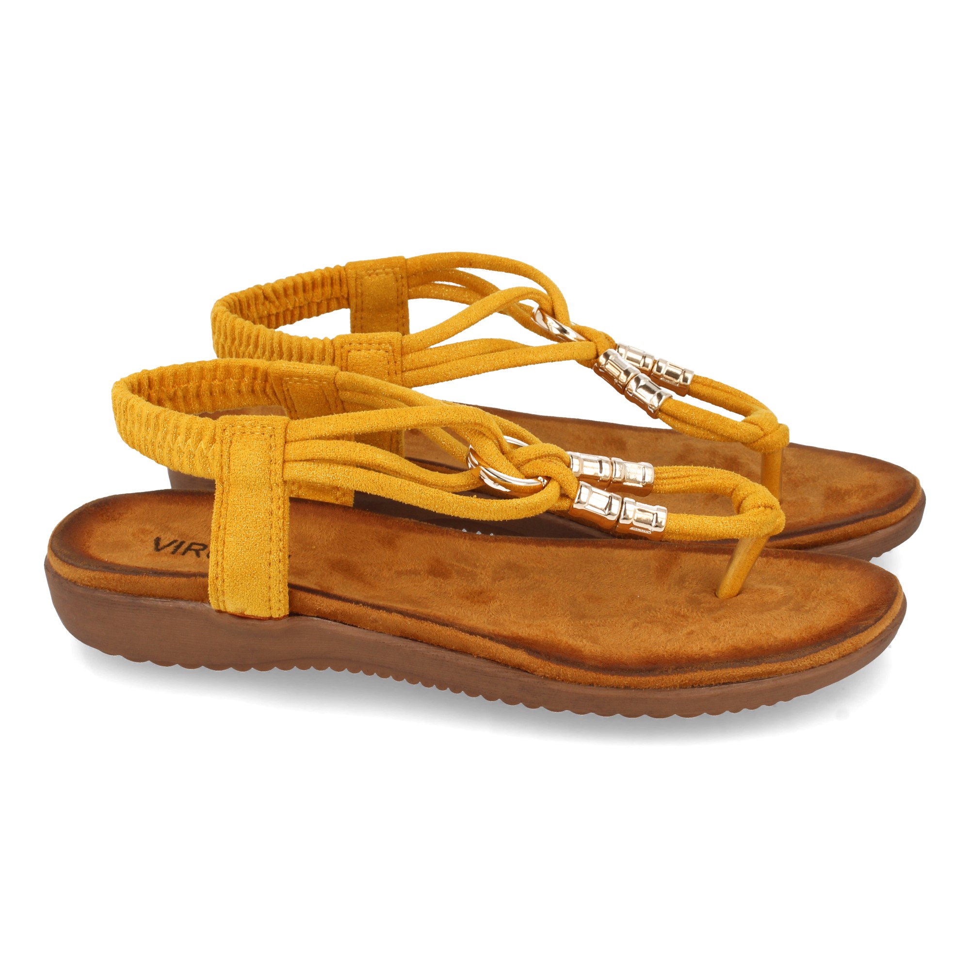 Sandalia Plana de Mujer Comodas de Estilo Esclava con Detalle Metalico en el Empeine y Cierre Elástico en el Talón Primavera Verano 2021