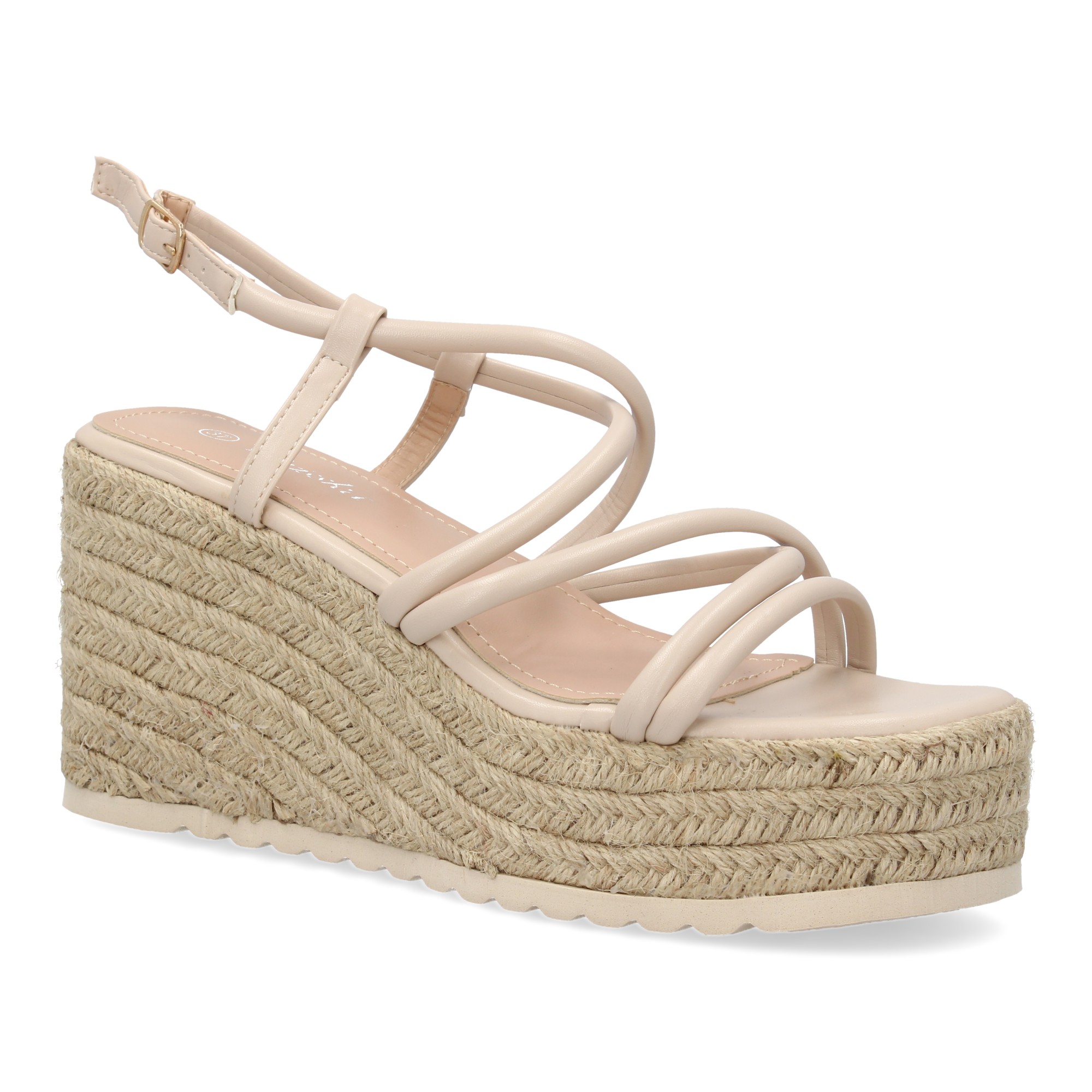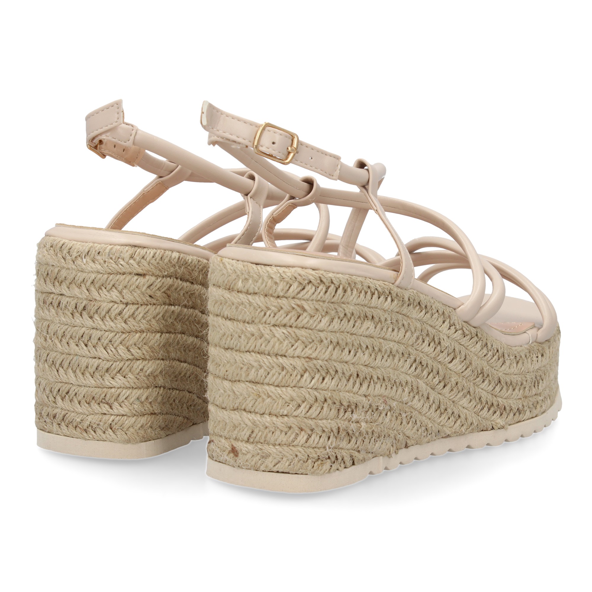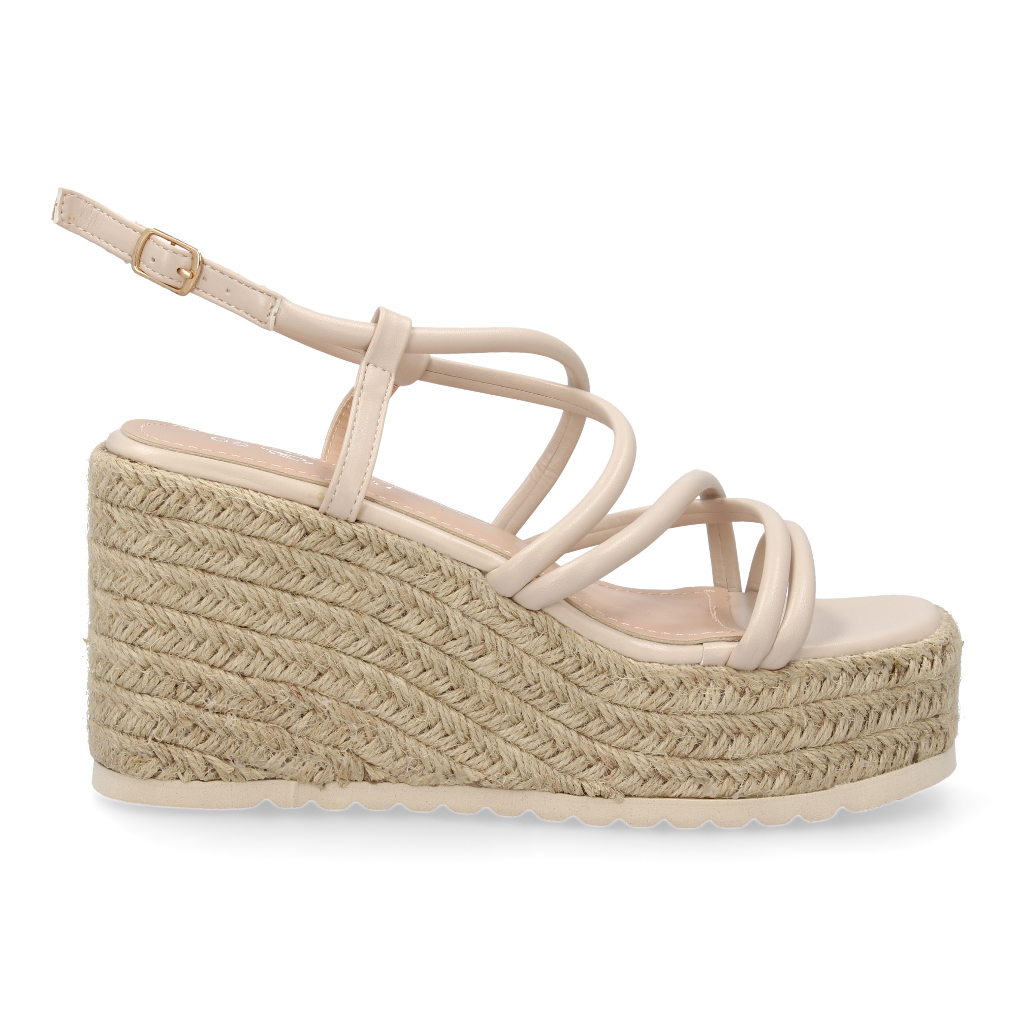 Sandalias de cuña de yute para mujer comodas y elegantes diseño moderno con tiras cruzadas en la pala con cierre de hebilla ideales para primavera-verano.