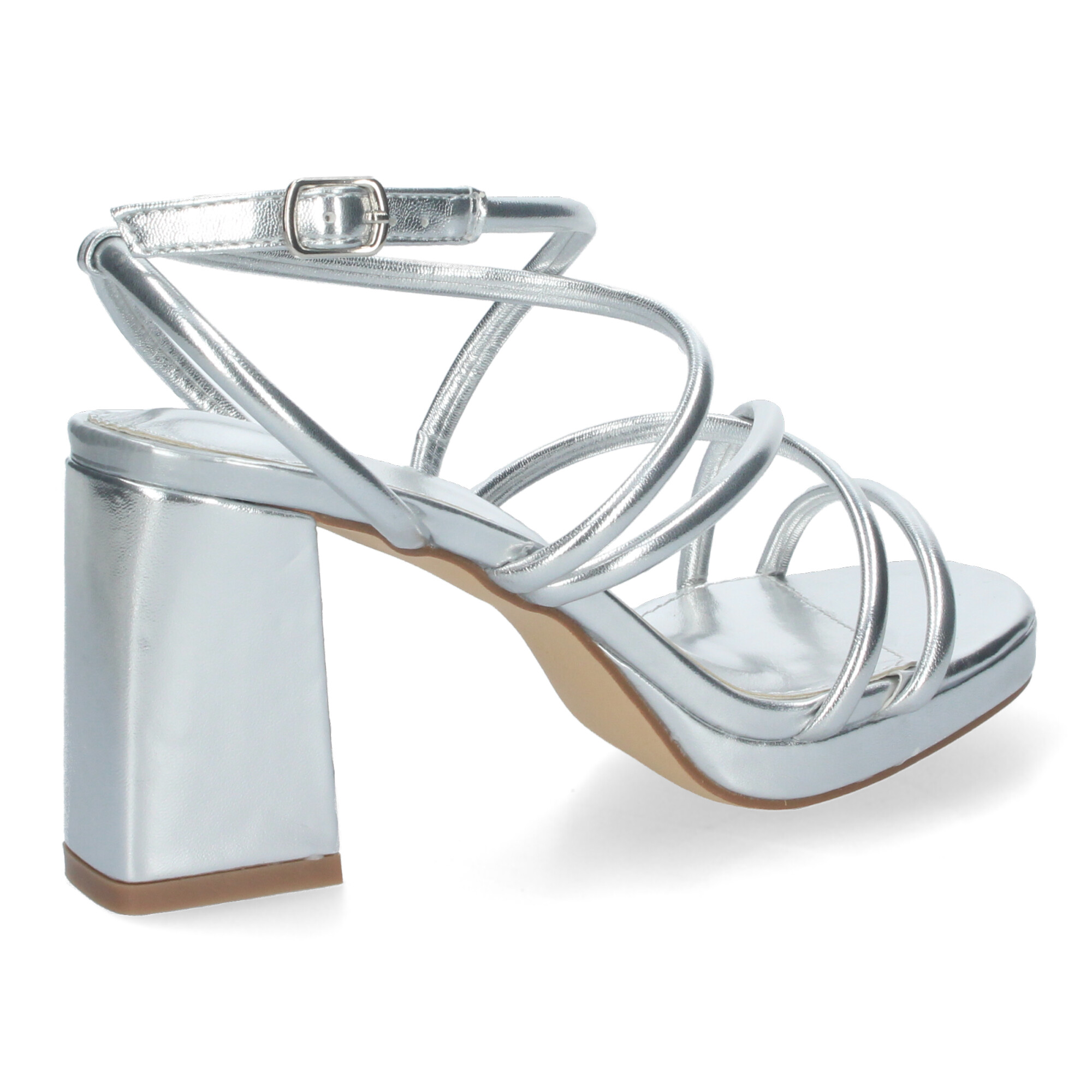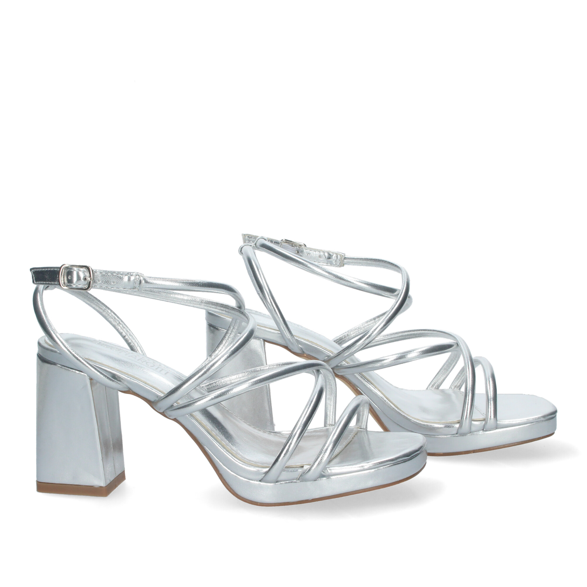 Sandalias de Mujer de fiesta con tiras entrecruzadas con brillantes tacón cuadrado metalizado y cierre de hebilla ajustable