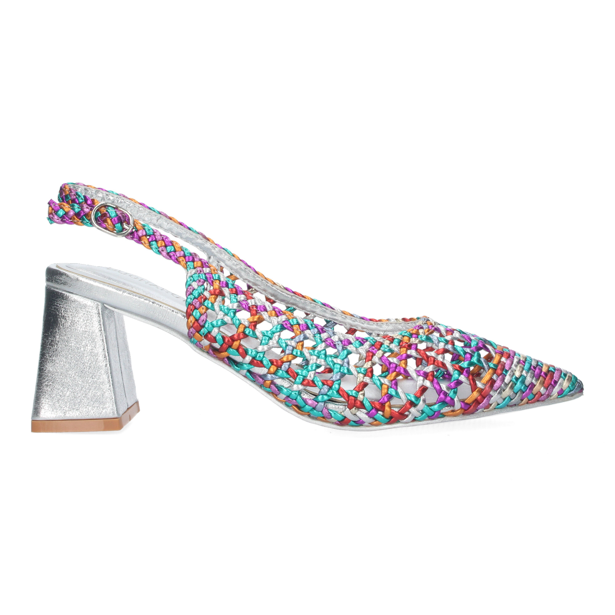 Zapato de Tacon para Mujer Comodo Estilo Salon de Punta Fina de Material Entrelazado y Cierre de Hebilla