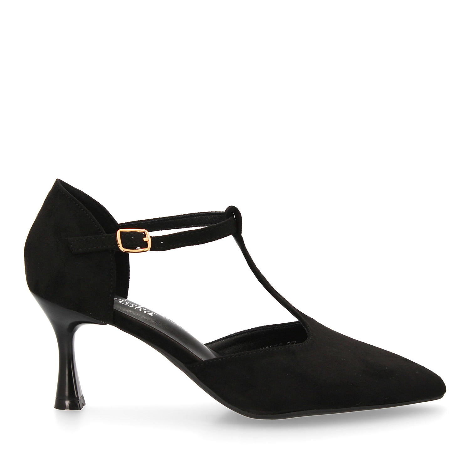 Zapato de tacón medio con tira en T para mujer. Elegante cómodo y versátil. Con un diseño tipo salón ideal para otoño invierno. Cierre de hebilla y tacón fino.