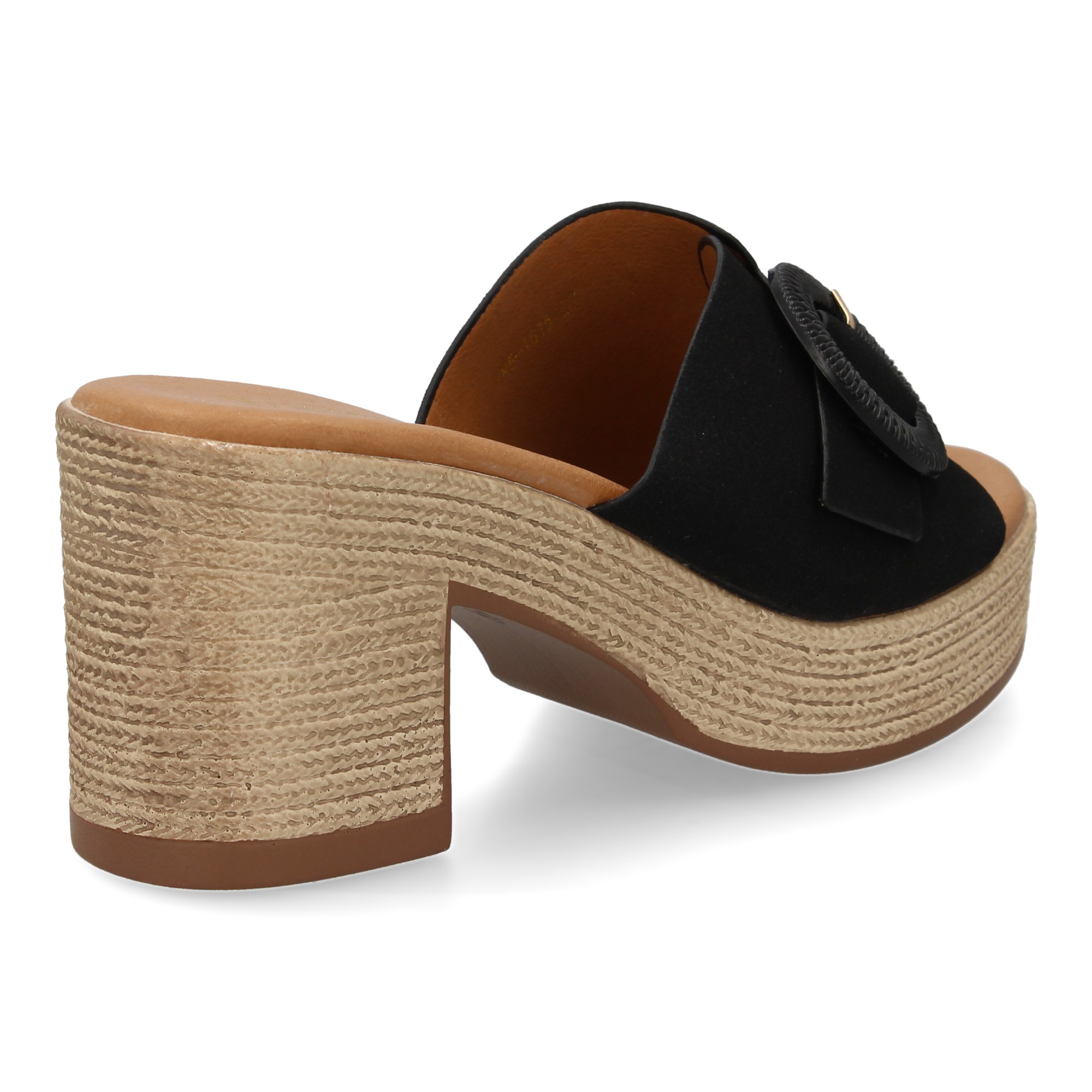 Zueco de tacon comodos y elegantes diseño moderno con hebilla decorativa en la pala ideales para primavera verano.